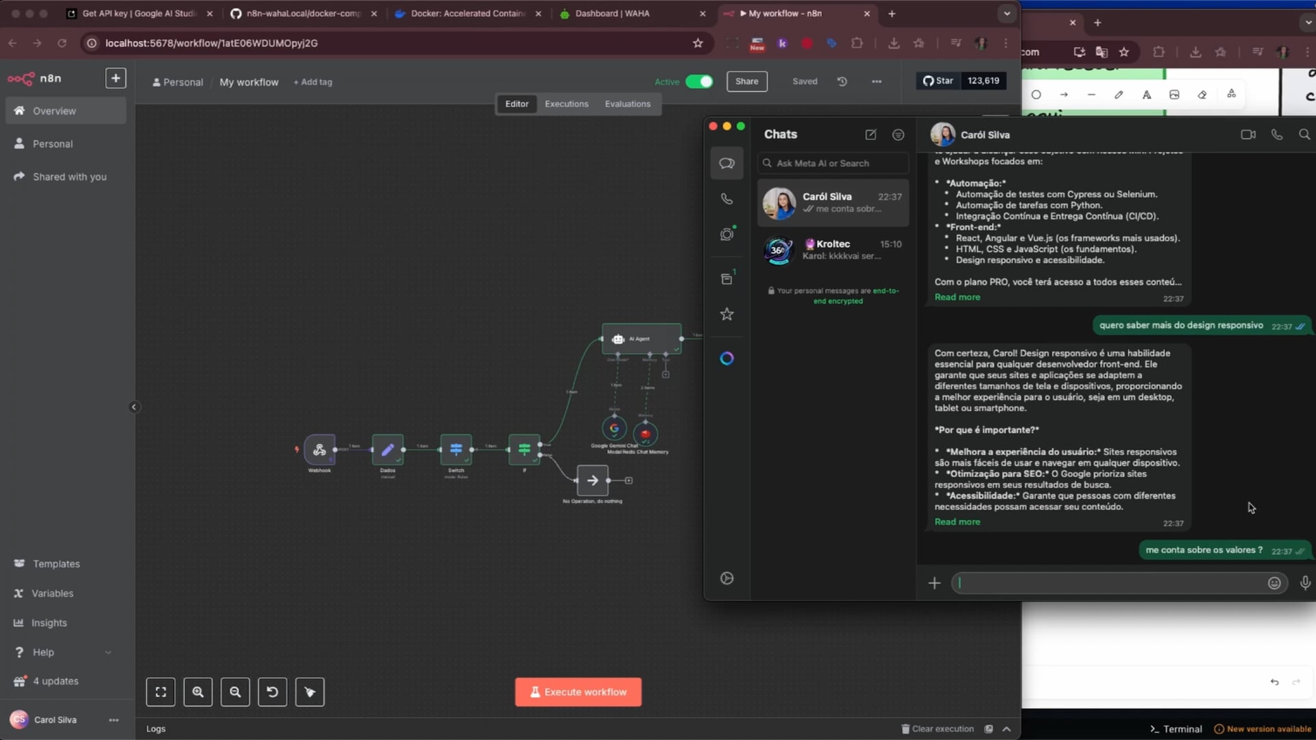 Ajustamos o tempo de resposta do agente para 15 segundos, tornando-o mais humanizado. Personalizamos o fluxo de mensagens e incentivamos o uso da criatividade para aprimorar a automação. Oferecemos suporte nos comentários e Discord.