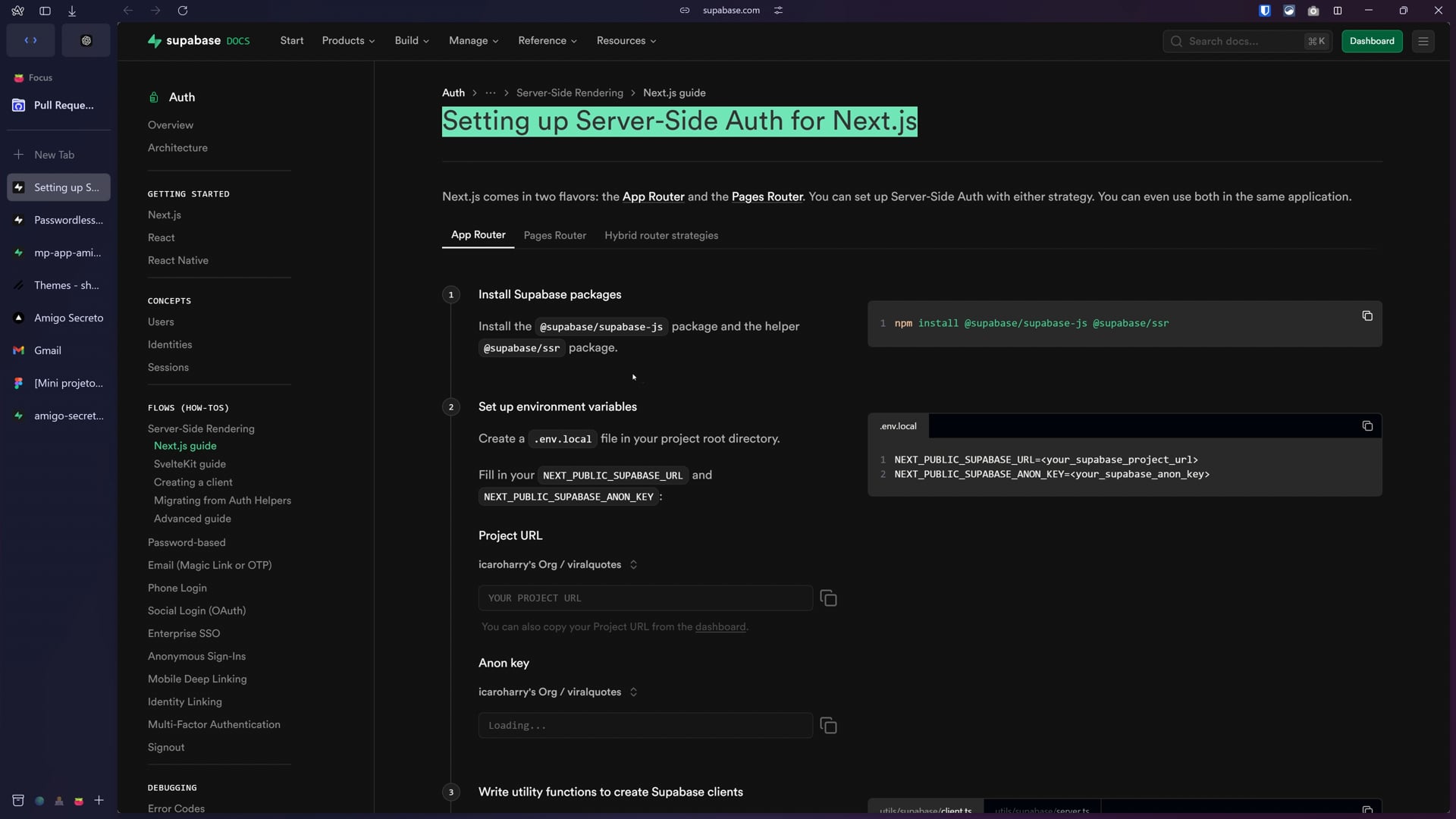 Estamos configurando o Next.js para integrar com Supabase, utilizando App Router. Instalamos bibliotecas necessárias, configuramos variáveis de ambiente, criamos funções para conexão cliente/servidor, e configuramos middleware para gerenciar autenticação. Em seguida, desenvolveremos a página de login.