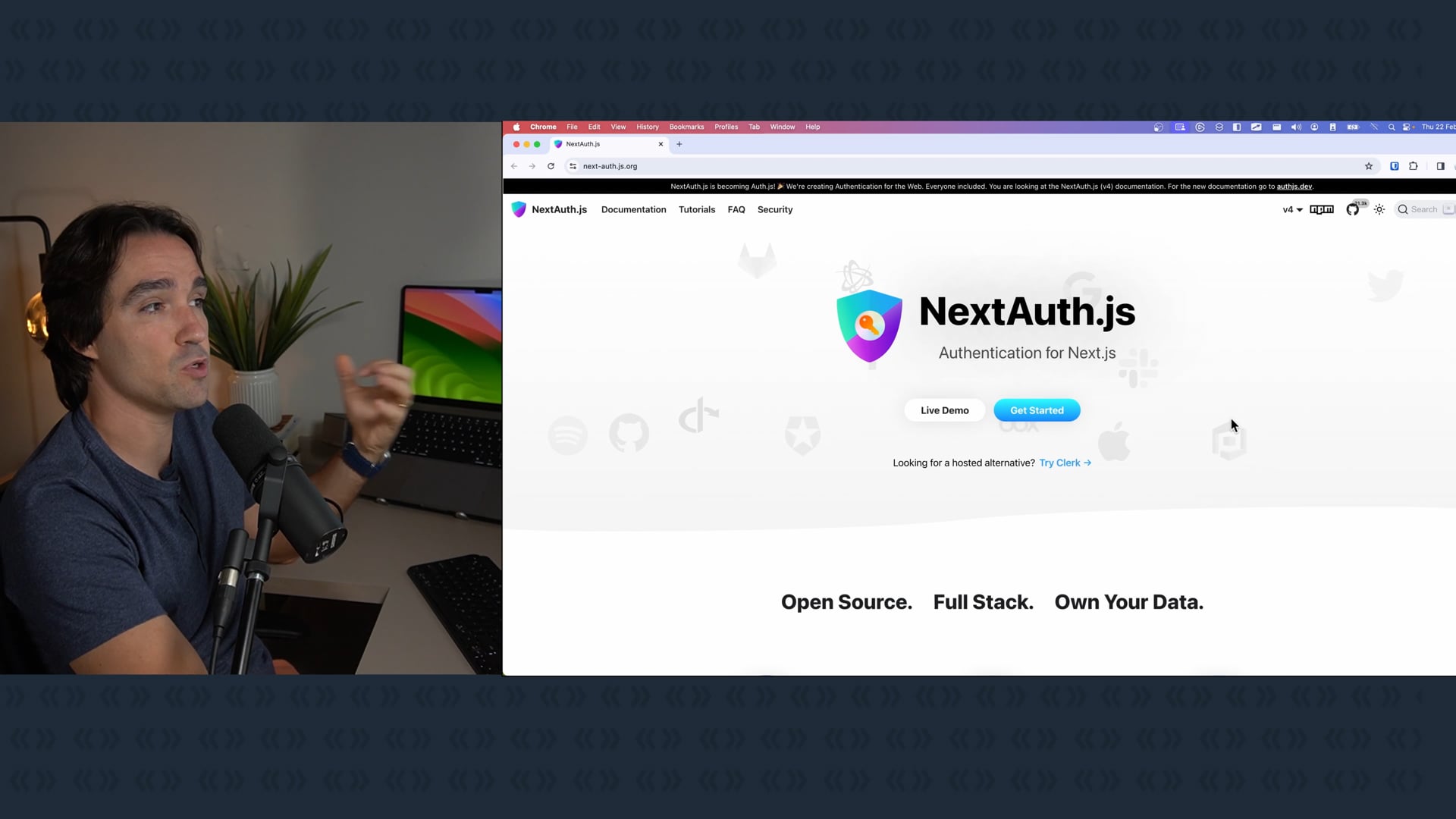 Instalamos a versão 4 do NextAuth em nosso projeto de autenticação Next com Github e exploramos a documentação do NextAuth. Seguindo os passos recomendados, implementamos rotas automáticas pré-definidas pela biblioteca e configuramos o `Catch All Route`. Continuamos nossa configuração usando os novos `route handlers` do Next 13.2 e discutimos sobre a organização do código.