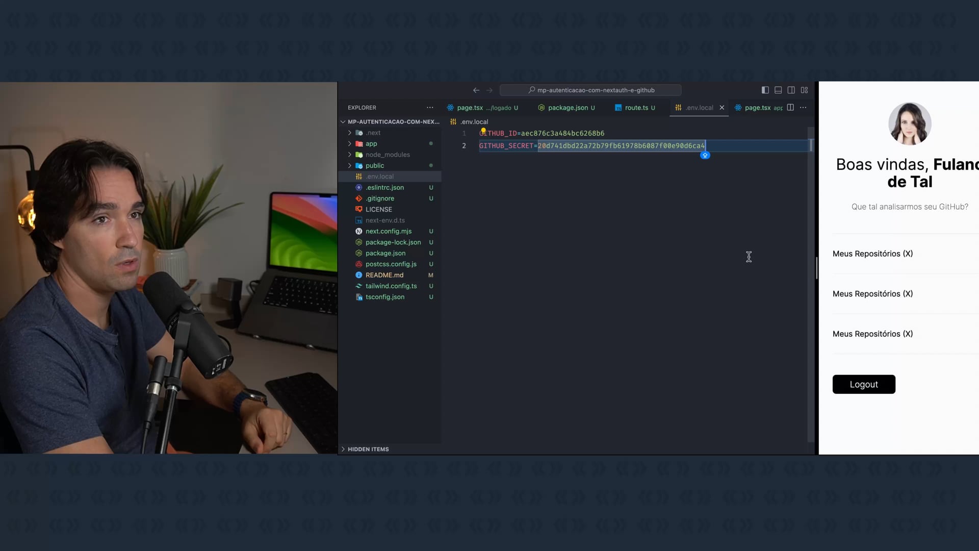 Neste vídeo, avançamos na configuração de autenticação com Github usando NextAuth, criando e especificando opções de autenticação. Configuramos o provedor Github e organizamos os detalhes do OAuth. Corrigimos erros e garantimos a execução correta da autenticação.