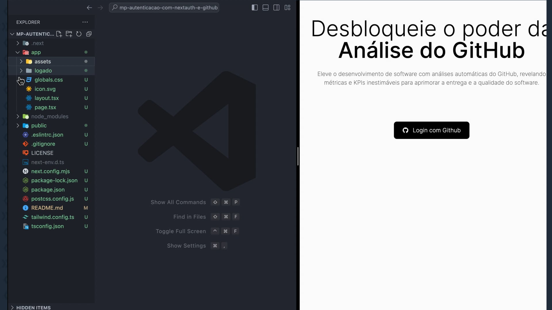 No vídeo, continuamos desenvolvendo nosso projeto de autenticação Next com Github usando a biblioteca NextAuth. Focamos na estilização da página `logged`, implementando classes, importando imagens de fundo e manipulando elementos HTML. Usamos classes de estilo de forma responsiva e melhoramos a semântica incluindo um cabeçalho.