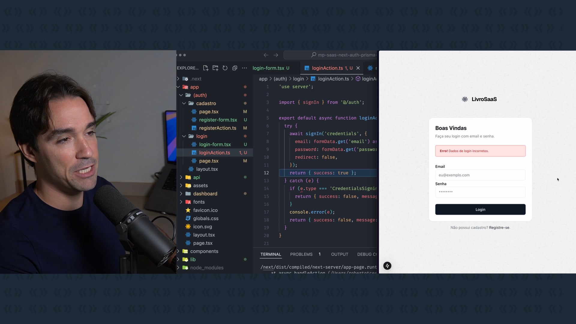 Adicionamos controle de acesso para impedir usuários logados de acessar as páginas de login e cadastro em nossa aplicação SaaS. Testamos redirecionamento para o dashboard e preparamos a funcionalidade de logout.