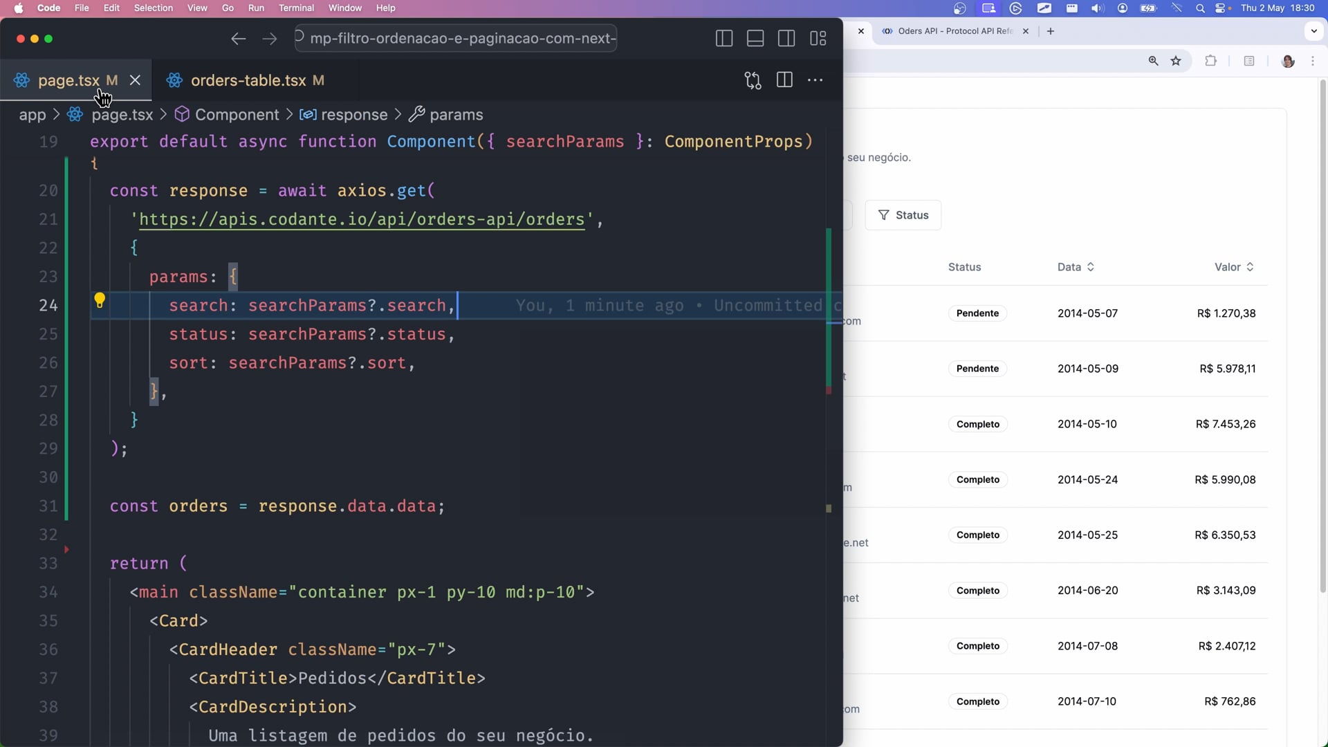 Implementamos a função getSortIcon() para a nossa aplicação Next.js, exibindo diferentes ícones dependendo da direção da ordenação de dados. Demonstramos como isso é refletido na interface do usuário e na URL. Encorajamos a experimentação da ordenação em diferentes campos.