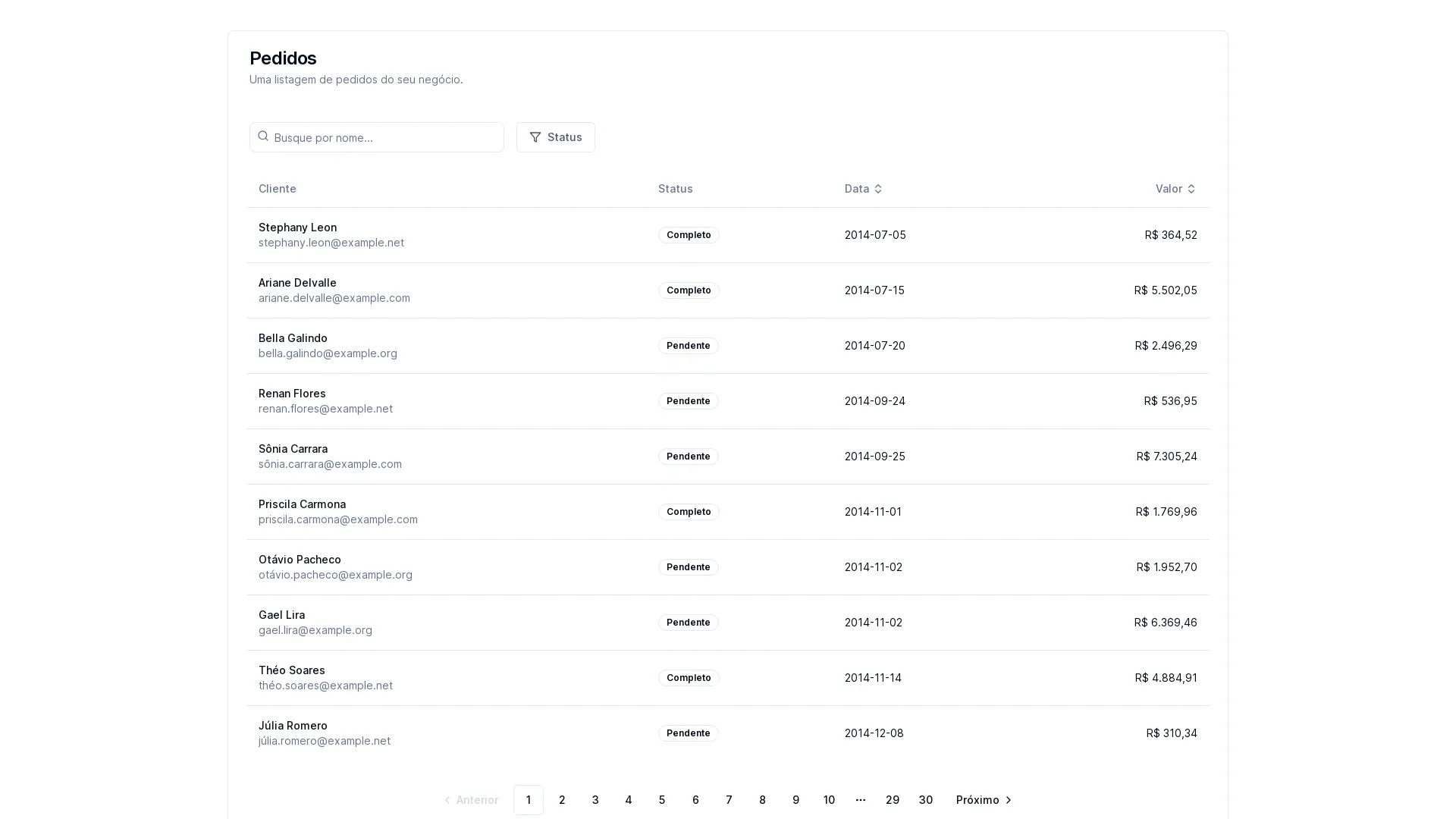 Busca, filtro, ordenação e paginação com Next.js