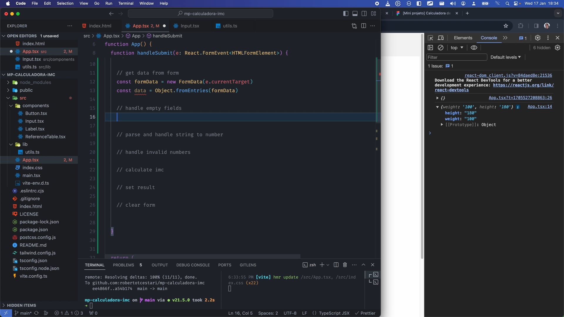 Para fazermos o cálculo do IMC, precisamos transformar as strings que vêm dos inputs em numbers. Vamos ver como fazer isso para criarmos nossas primeiras validações.