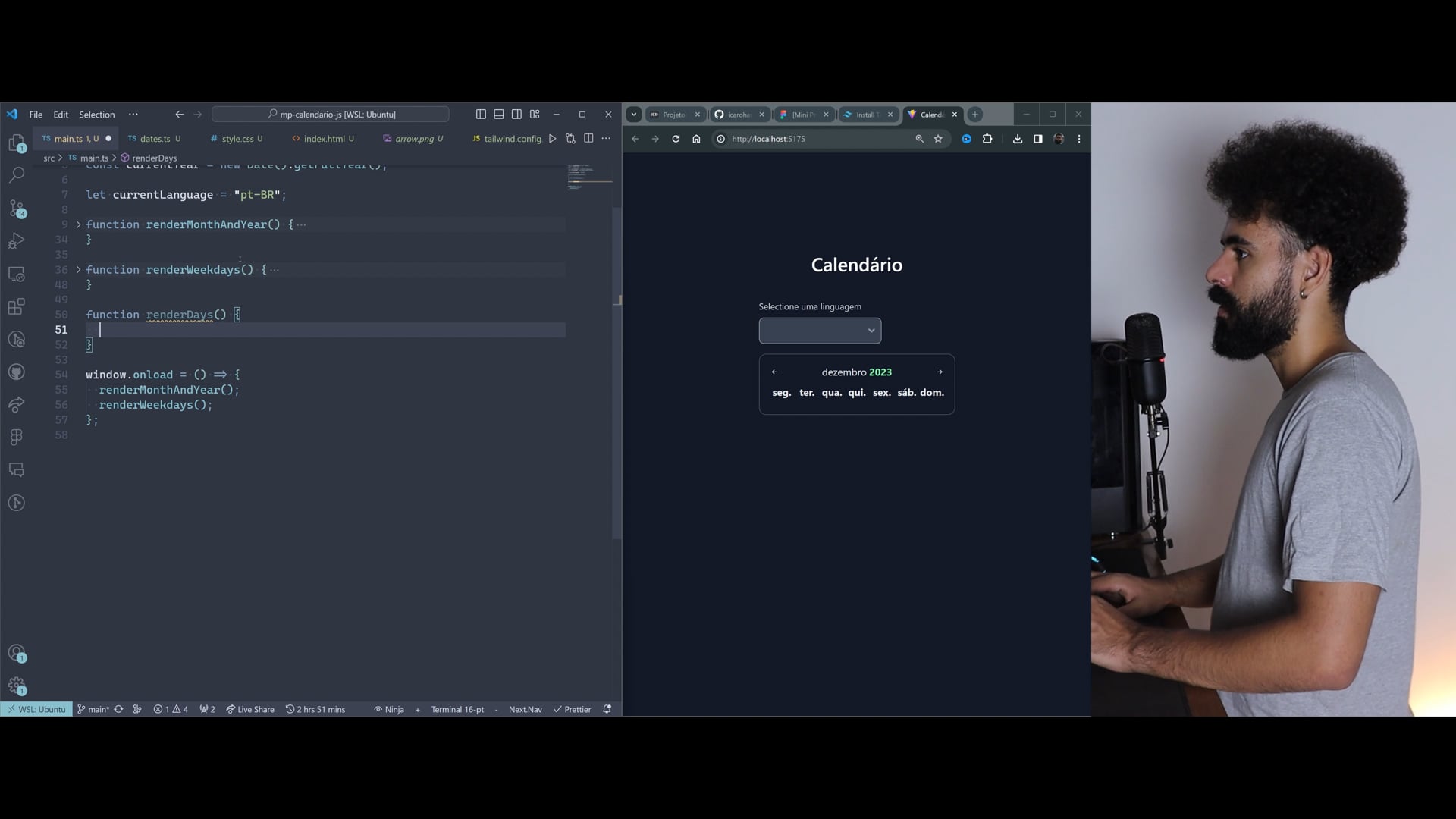 Nessa parte, o professor Ícaro cobre a exibição dos dias do mês em um calendário digital.