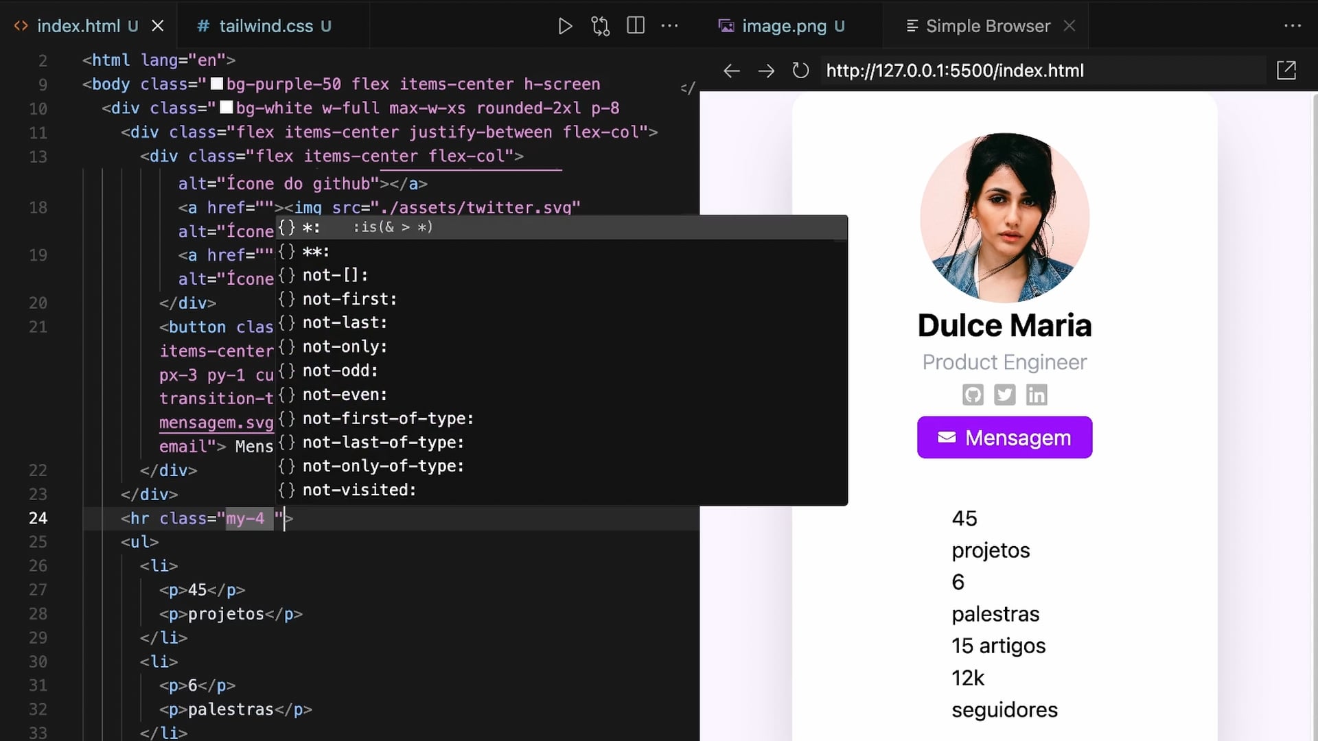 Exploramos a finalização do design responsivo do nosso projeto. Usamos Tailwind CSS para ajustar margens, bordas, alinhamentos e espaçamento com Flexbox. Fizemos ajustes para adaptar o layout ao modo mobile e desktop.