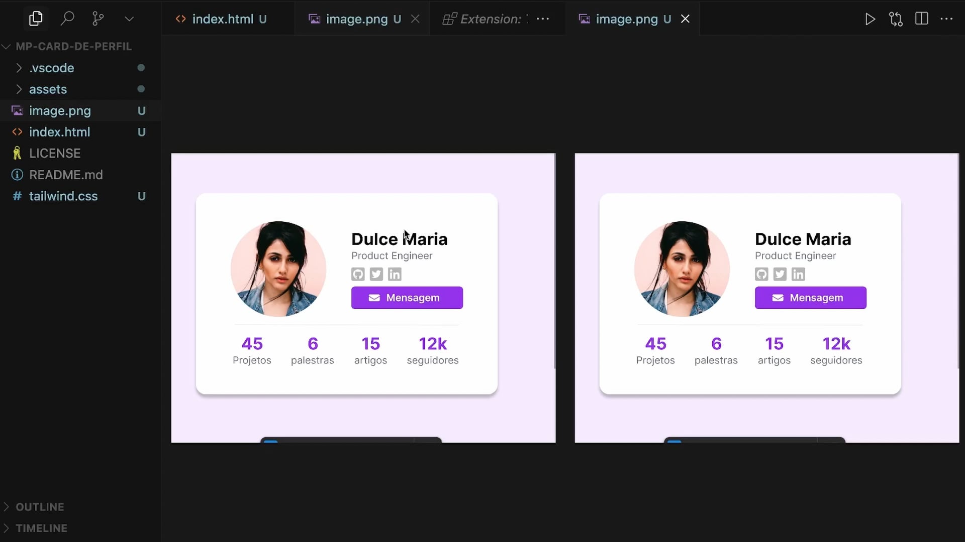Organizamos nosso projeto criando um layout inicial usando Tailwind CSS. Importamos imagens e otimizamos o peso delas para melhor desempenho. Adicionamos ícones para GitHub, Twitter, LinkedIn e mensagem. Ajustamos tamanhos e centralizamos o card.