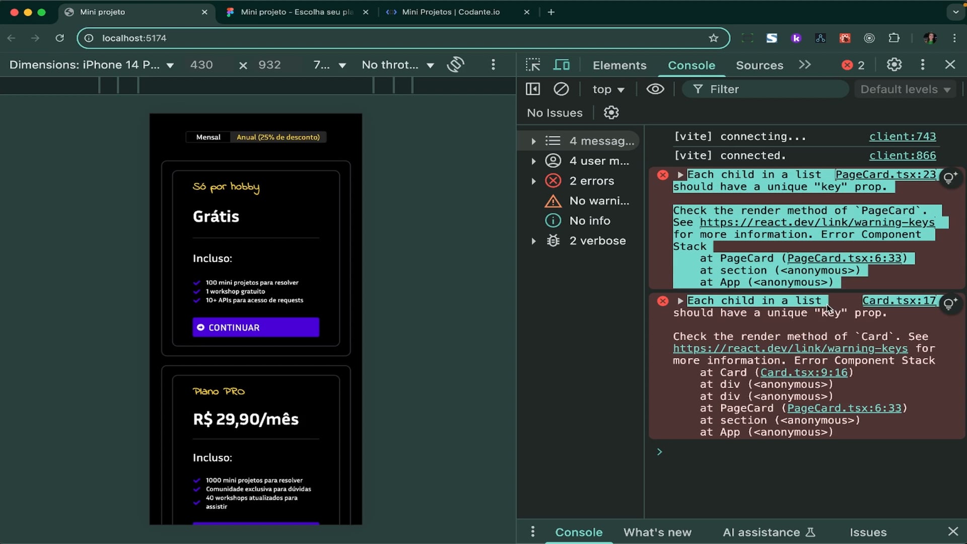 Finalizamos o projeto resolvendo erros de chave no React e implementando o fluxo de deploy com Vercel. Após subir o projeto, obtemos uma URL para compartilhar e adicionar ao portfólio. Estamos disponíveis para esclarecer dúvidas nos comentários.