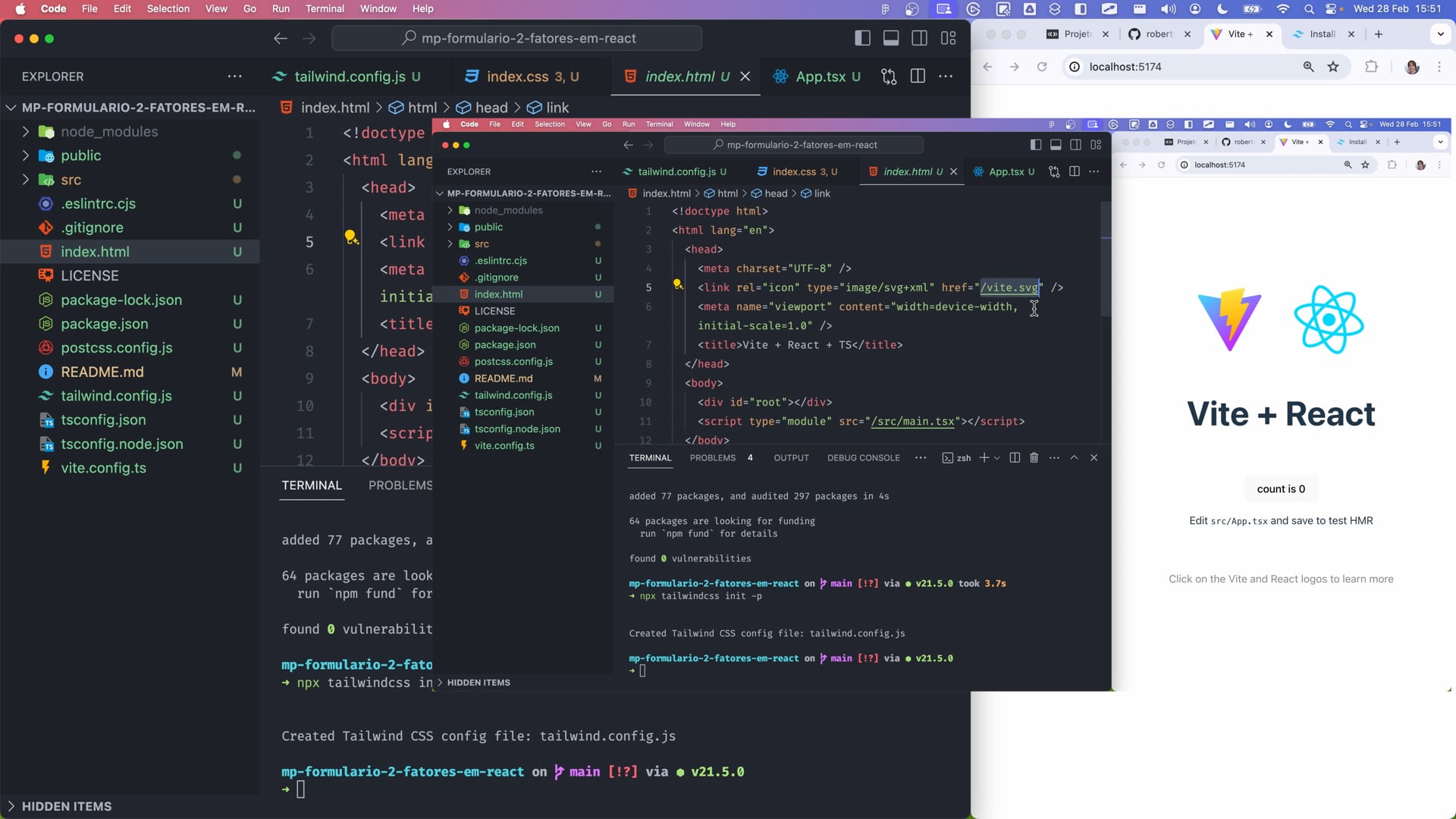No vídeo, realizamos o fork do projeto no GitHub. Iniciamos o projeto usando VS Code e Vite, e limpamos o código inicial. Em seguida, instalamos e configuramos o Tailwind CSS, ajustamos arquivos irrelevantes e preparamos o ambiente de desenvolvimento. Finalmente, preparamos para a implementação dos requisitos do projeto.