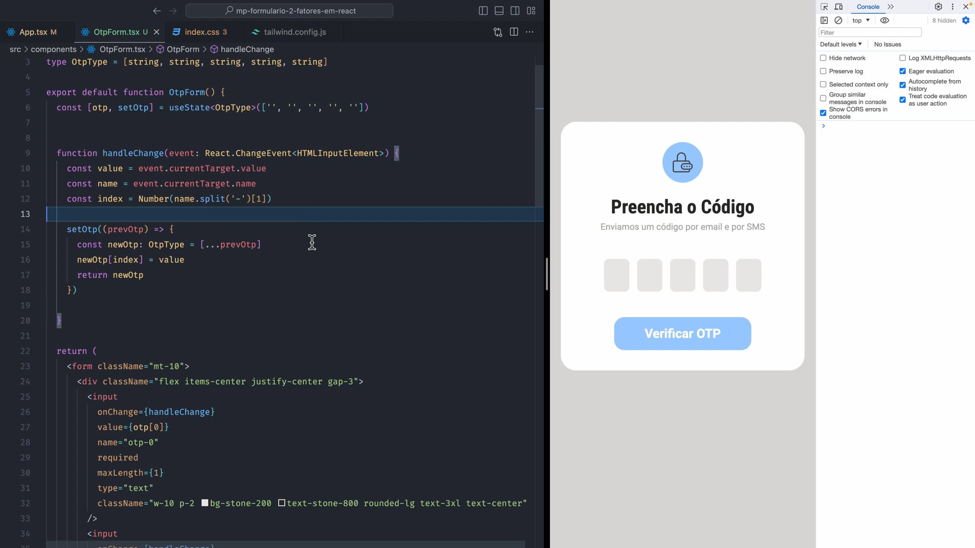 Nesse vídeo, adicionamos uma validação ao nosso formulário OTP com React para aceitar apenas dígitos. Utilizamos uma expressão regular para o teste e, em seguida, focamos na implementação do requisito de foco automático no primeiro input ao carregar a página.