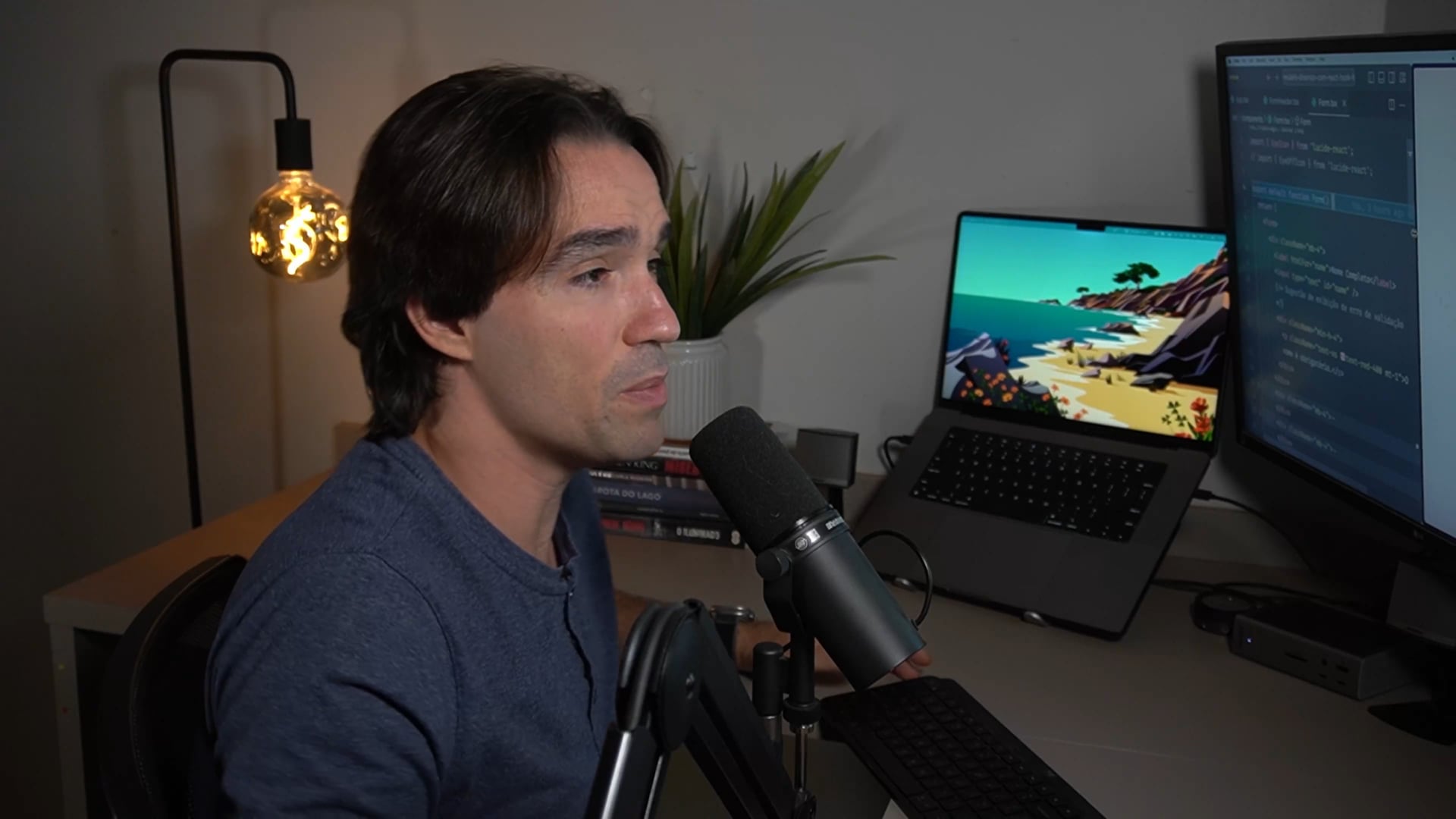 Vamos implementar um campo de senha dinâmico. Primeiro, configuramos um estado para alternar entre tipos de input `password` e `text`, revelando ou ocultando a senha. Depois, transformamos um ícone em botão para alterar essa visibilidade com acessibilidade.