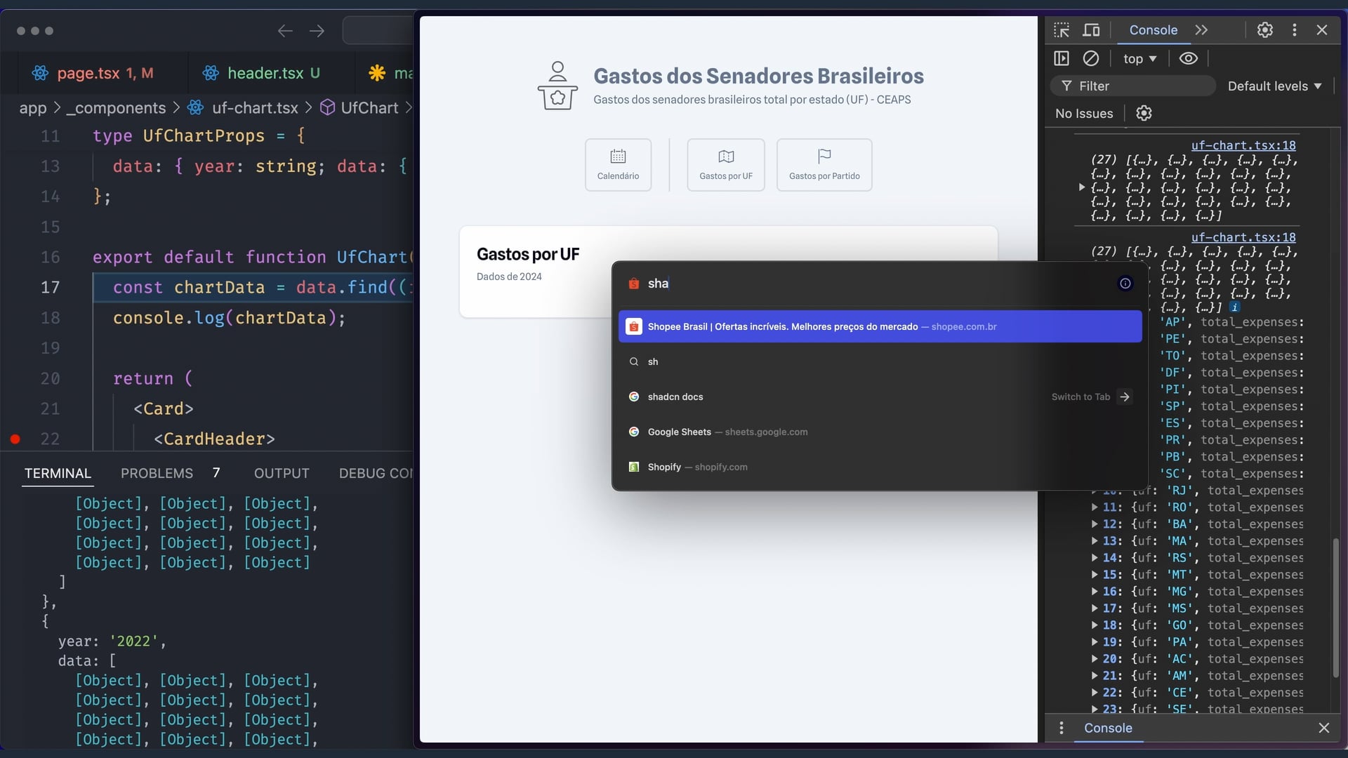 Exploramos como configurar gráficos usando a biblioteca ShadCN. Instalamos componentes, definimos e manipulamos dados, ajustamos layouts e personalizamos o visual das barras no nosso projeto de gastos dos senadores.