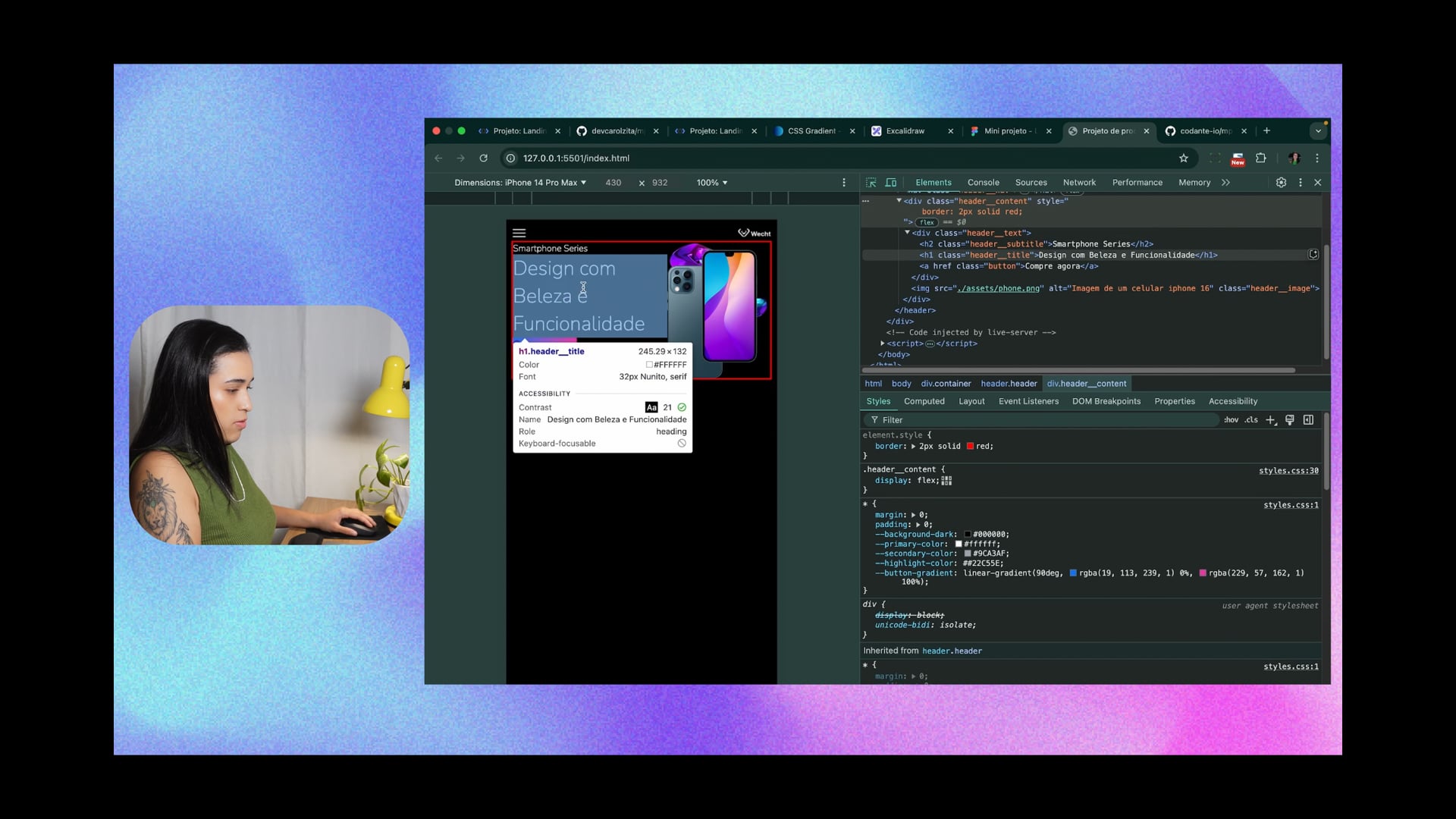Neste vídeo, ajustamos o design do header, alinhando elementos com display flex e ajustando bordas, padding, e margens. Melhoramos a imagem do logo para SVG, criamos sombra usando background, e finalizamos o layout do header. Preparamos para a próxima etapa.
