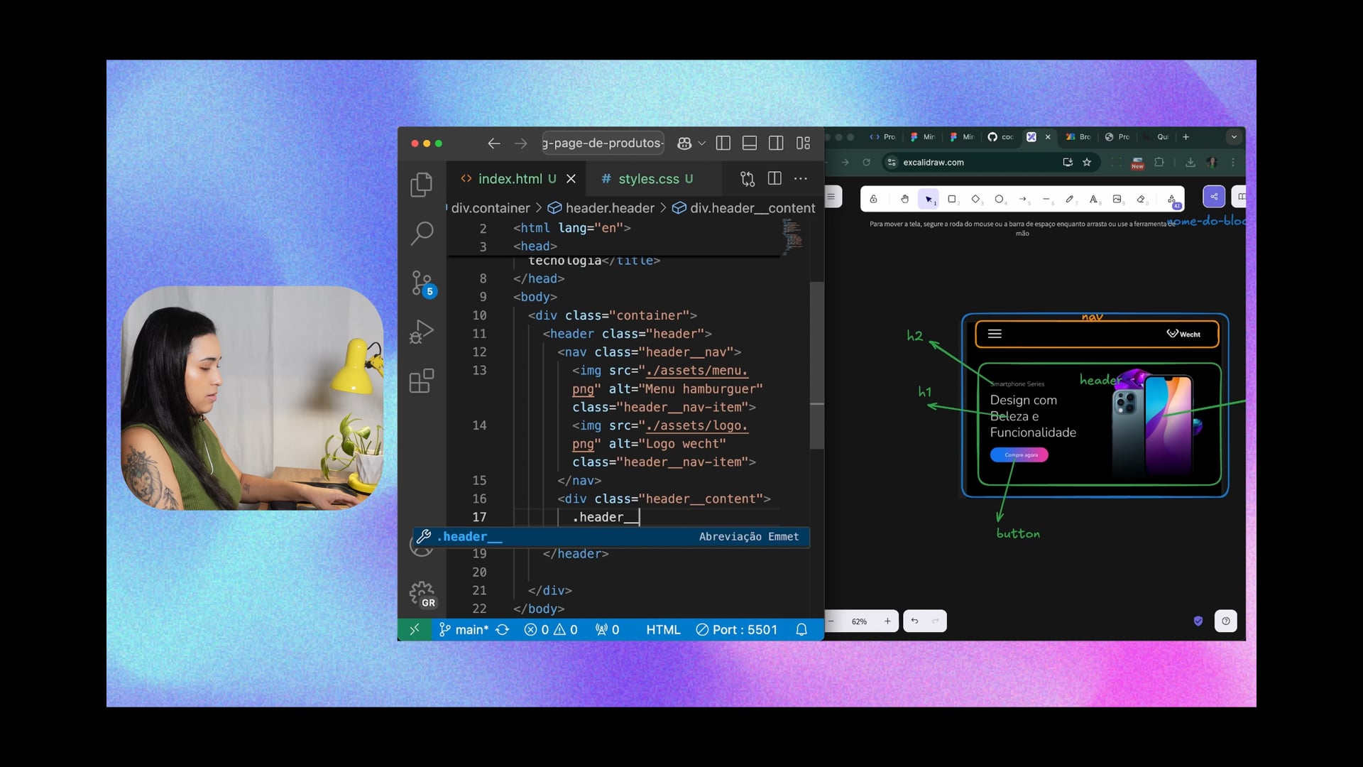 Classificamos as seções do nosso site utilizando o método BEM, criando blocos e elementos bem definidos no HTML. Exploramos a estruturação do header, dividindo em subcomponentes e organizando classes. Exportamos imagens do Figma e ajustamos referências no código.