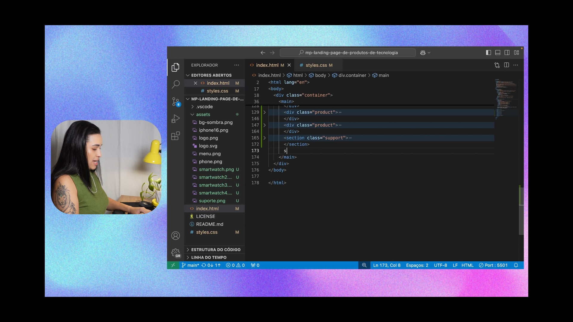 Neste vídeo, criamos uma seção de formulário na nossa landing page. Estruturamos com HTML, organizando labels, inputs, e botão. Aplicamos estilização com CSS, usando flex direction column, padding, e border radius para melhorar a aparência do formulário.