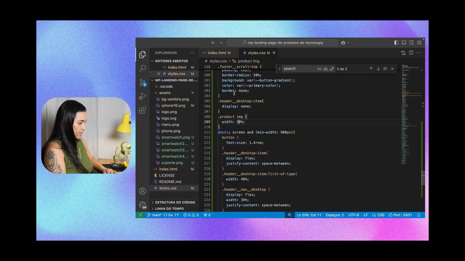 Nessa parte, integramos seções de formulários e rodapé na estrutura de produtos, aprimorando a organização visual e garantindo que tudo esteja alinhado e posicionado corretamente na landing page.