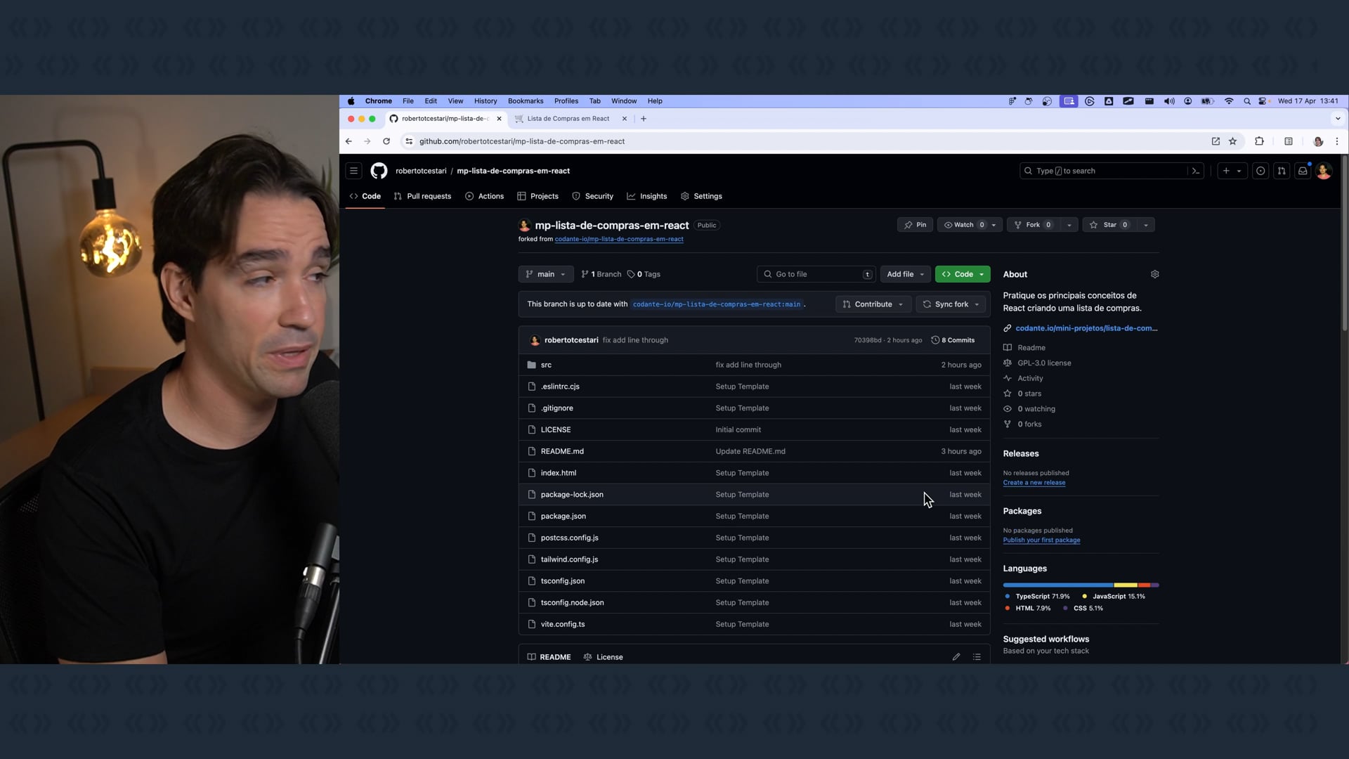 Clonamos o repositório do mini projeto da lista de compras no React a partir do GitHub. Após a clonagem, abrimos o projeto no VSCode e fizemos uma exploração inicial. Identificamos que atualmente tudo está "hardcoded" e ressaltamos a necessidade de tornar o aplicativo mais dinâmico.