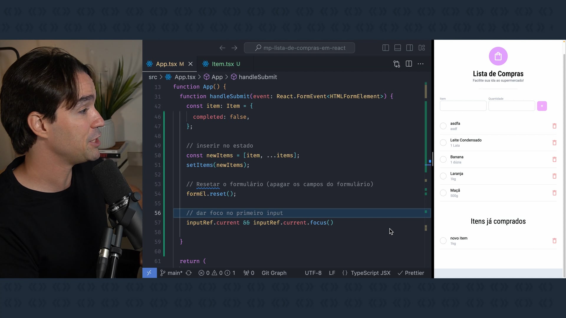 Realizamos a implementação de uma função condicional para alterar o design dos itens em nossa aplicação de lista de compras com React. Abrangemos todos os aspectos do display de itens, inclusive se eles foram comprados ou não, exibindo um feedback visual para itens comprados, como um sinal de verificação e o item riscado, enquanto os itens ainda não adquiridos são mostrados de forma distinta.