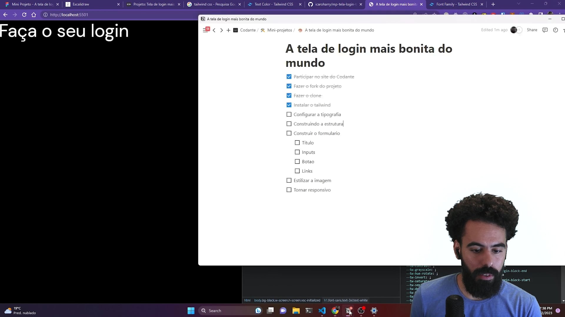 Agora está na hora de estilizar o background. O Ícaro nessa aula mostra como fazer gradientes no tailwind além de mostrar algumas extensões úteis para o VSCode.