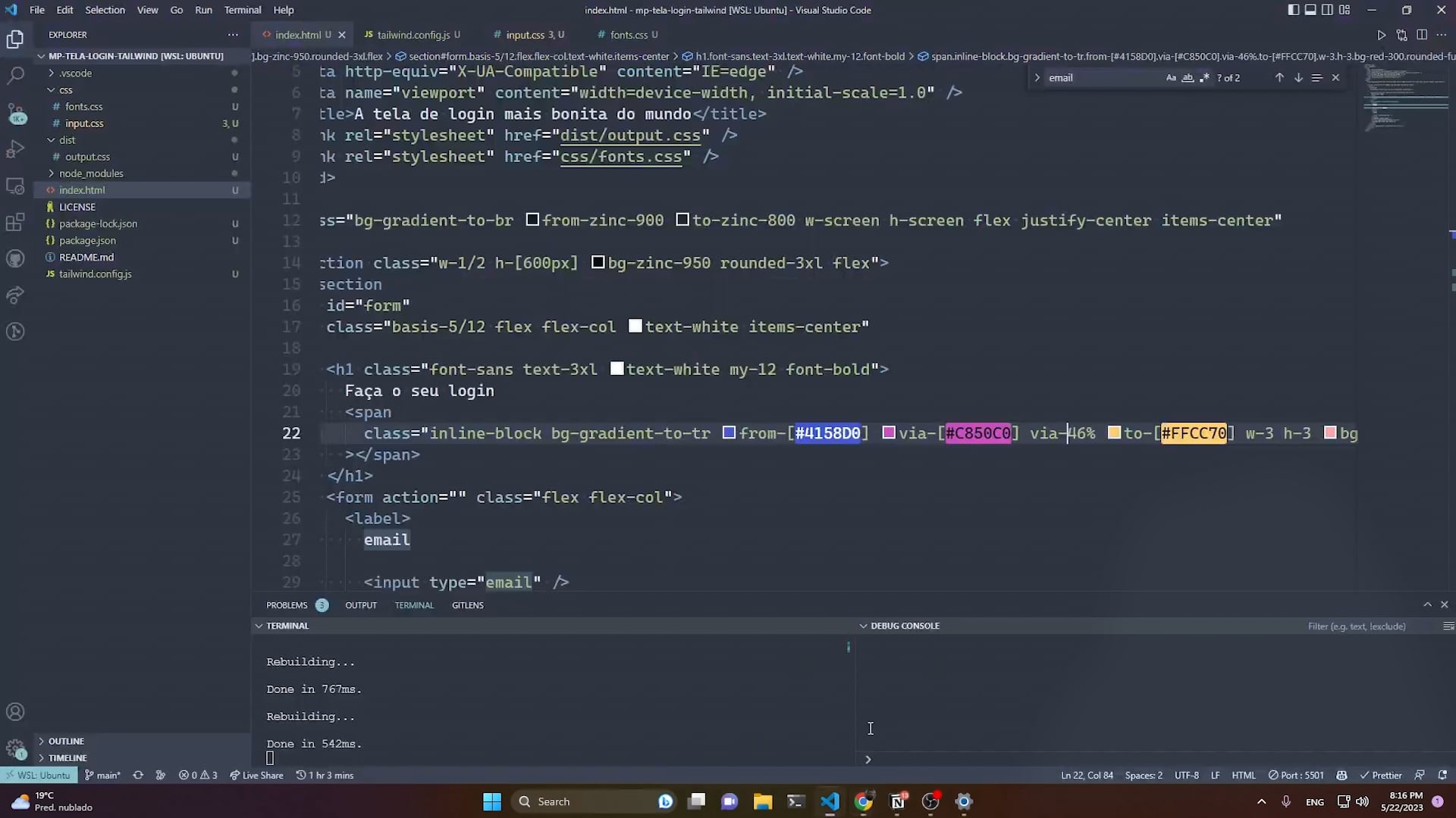 O Ícaro, além de explicar como fazer o “ponto final estilizado” que aparece no título, explica a técnica usada para fazer uma borda com gradiente no input. Ele explica como a classe focus-within do TailwindCSS pode ajudá-lo.