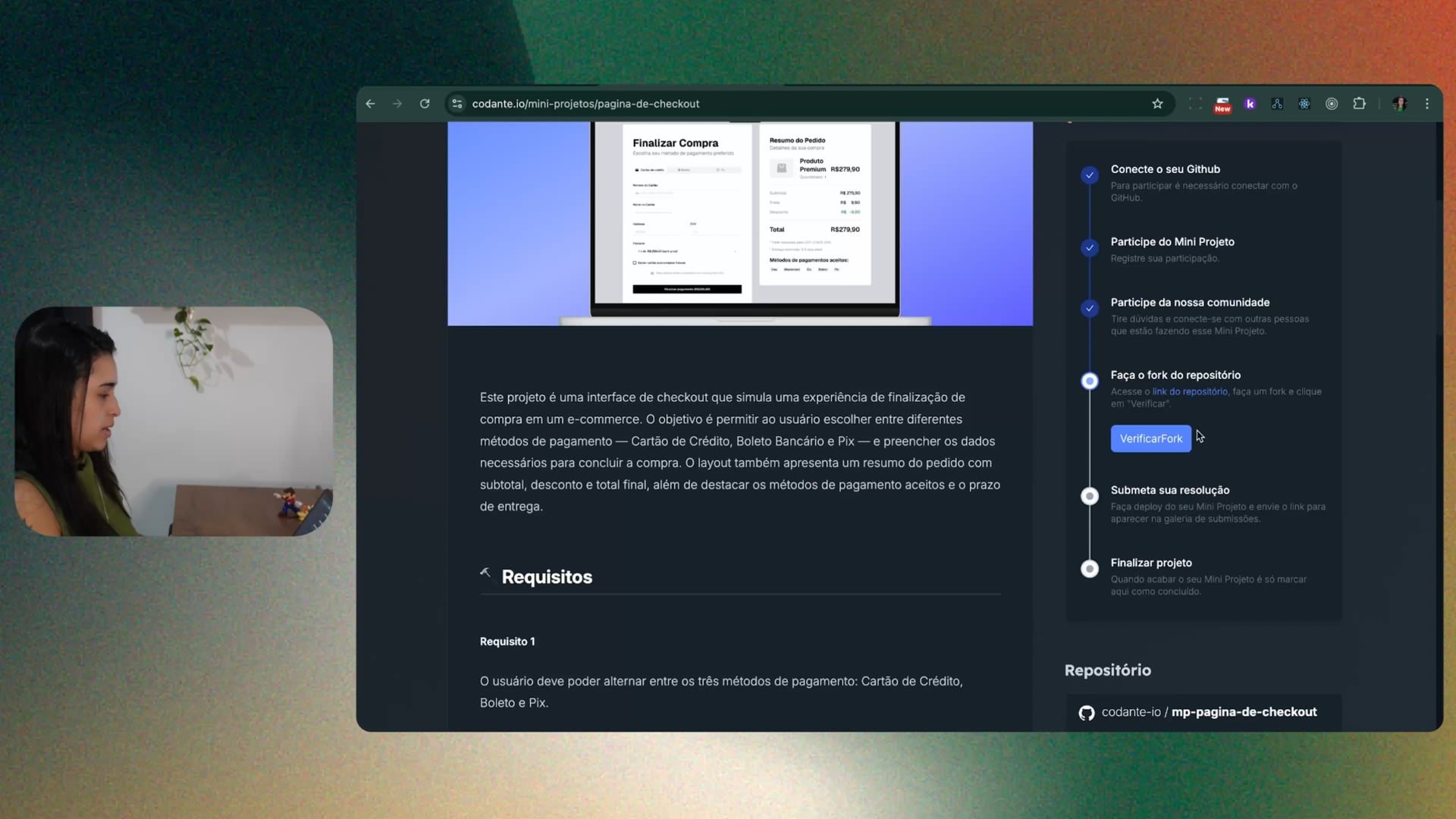 Realizamos o fork do repositório do projeto no GitHub, copiamos o link, e clonamos no terminal local. Em seguida, acessamos o diretório do projeto no editor de código.