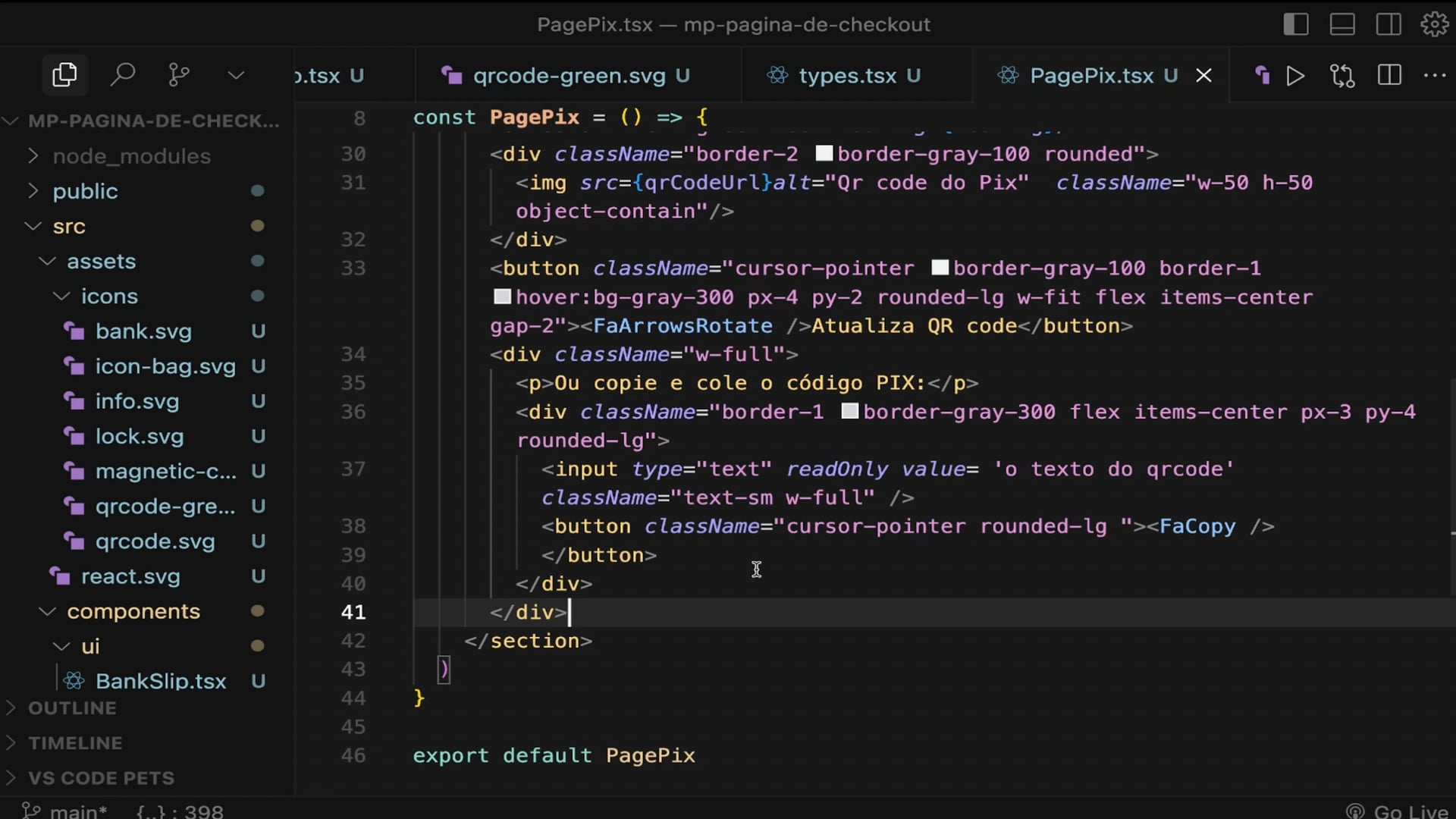 Implementamos a lógica para gerar e atualizar automaticamente o código PIX e o QR Code com a função generateQRCode. Melhoramos o feedback ao usuário, criando um sistema de notificações com um toast que confirma a cópia do código PIX.