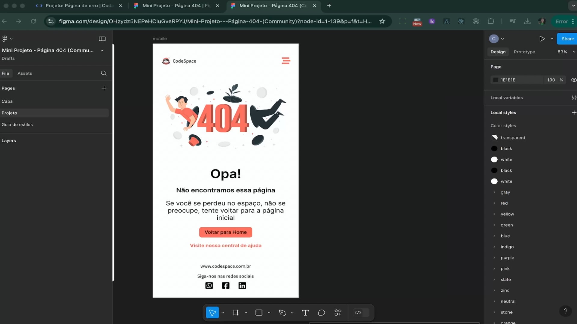 No vídeo, criamos o HTML da tela de erro, começando pela navegação mobile com logo e menu. Adicionamos a imagem 404, títulos, subtítulo e botões de navegação no conteúdo principal.