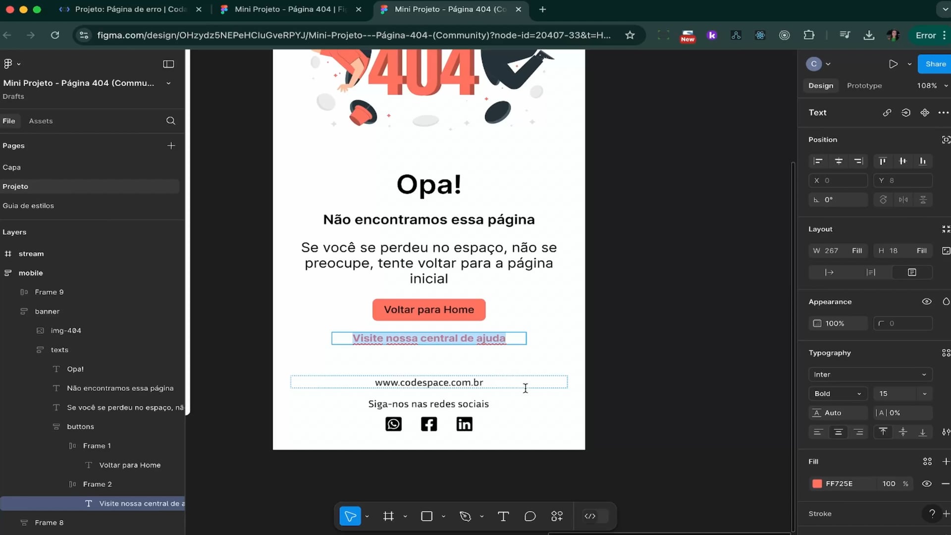 Finalizamos a estrutura do footer com links e ícones sociais, configuramos o layout responsivo ajustando o menu e a barra de navegação. Aplicamos estilizações em HTML e Tailwind, otimizando alinhamentos, tamanhos e cores.