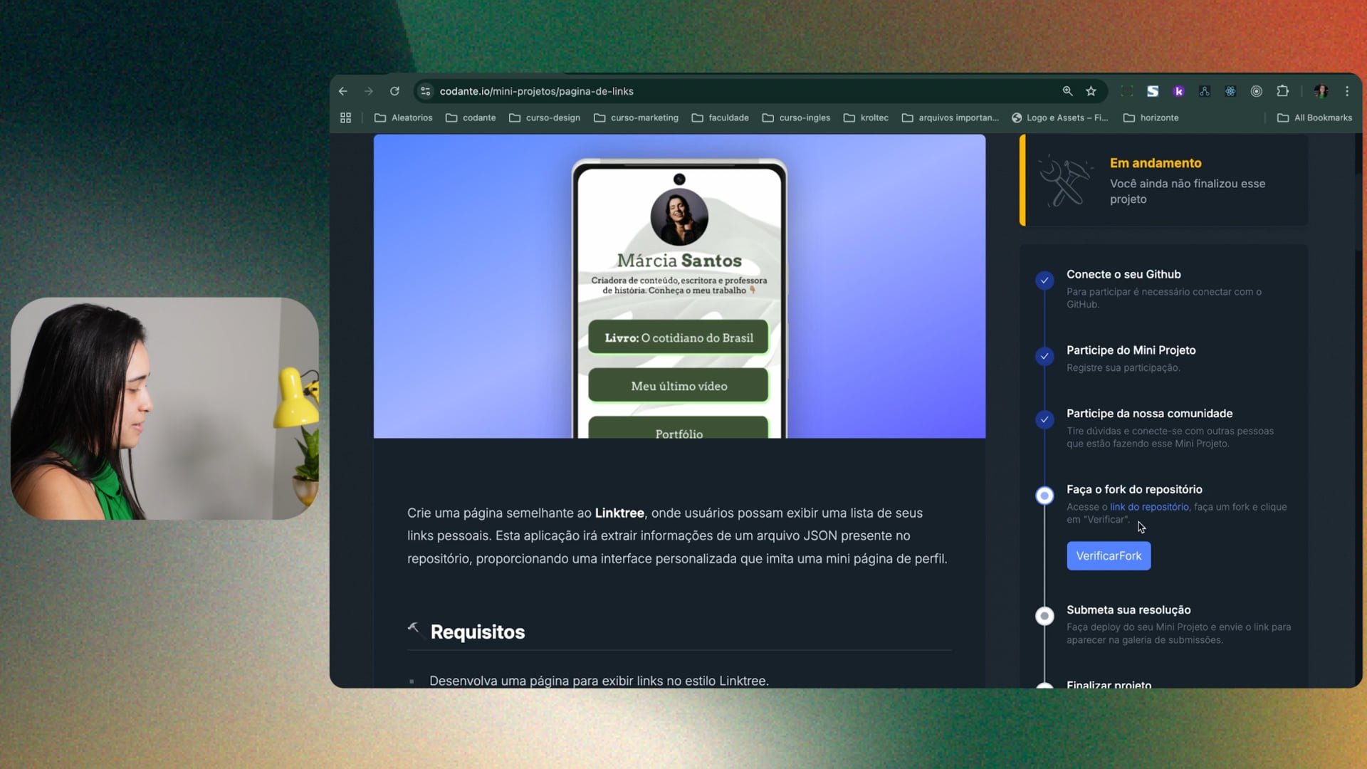Orientamos como forkar um repositório no GitHub e cloná-lo localmente para trabalhar em um mini projeto no VS Code. Recomendamos assistir a um workshop gratuito sobre Git e GitHub para melhor compreensão.