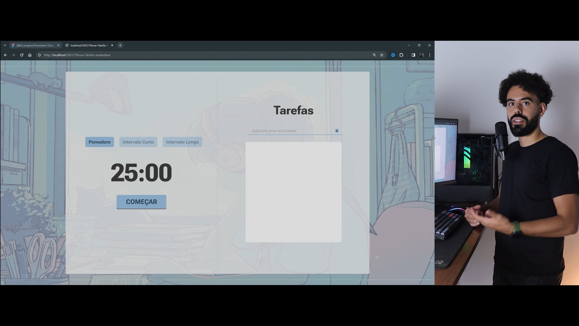 O professor Ícaro cria a lógica do cronômetro, implementando o timer de 25 minutos e os intervalos.
