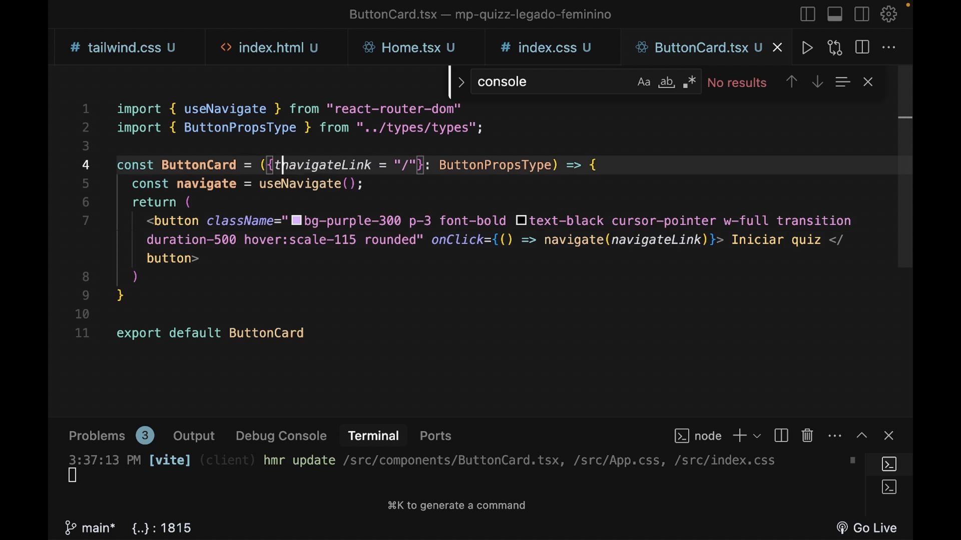 Ajustamos o botão do quiz adicionando um ícone de seta e alterando a lógica para permitir mudanças de cor de acordo com a opção correta ou incorreta. Implementamos um estado para identificar a seleção da opção de resposta, além de ajustar classes do Tailwind para refletir as escolhas visualmente. Concluímos com a finalidade de aprimorar interatividade e usabilidade do quiz.