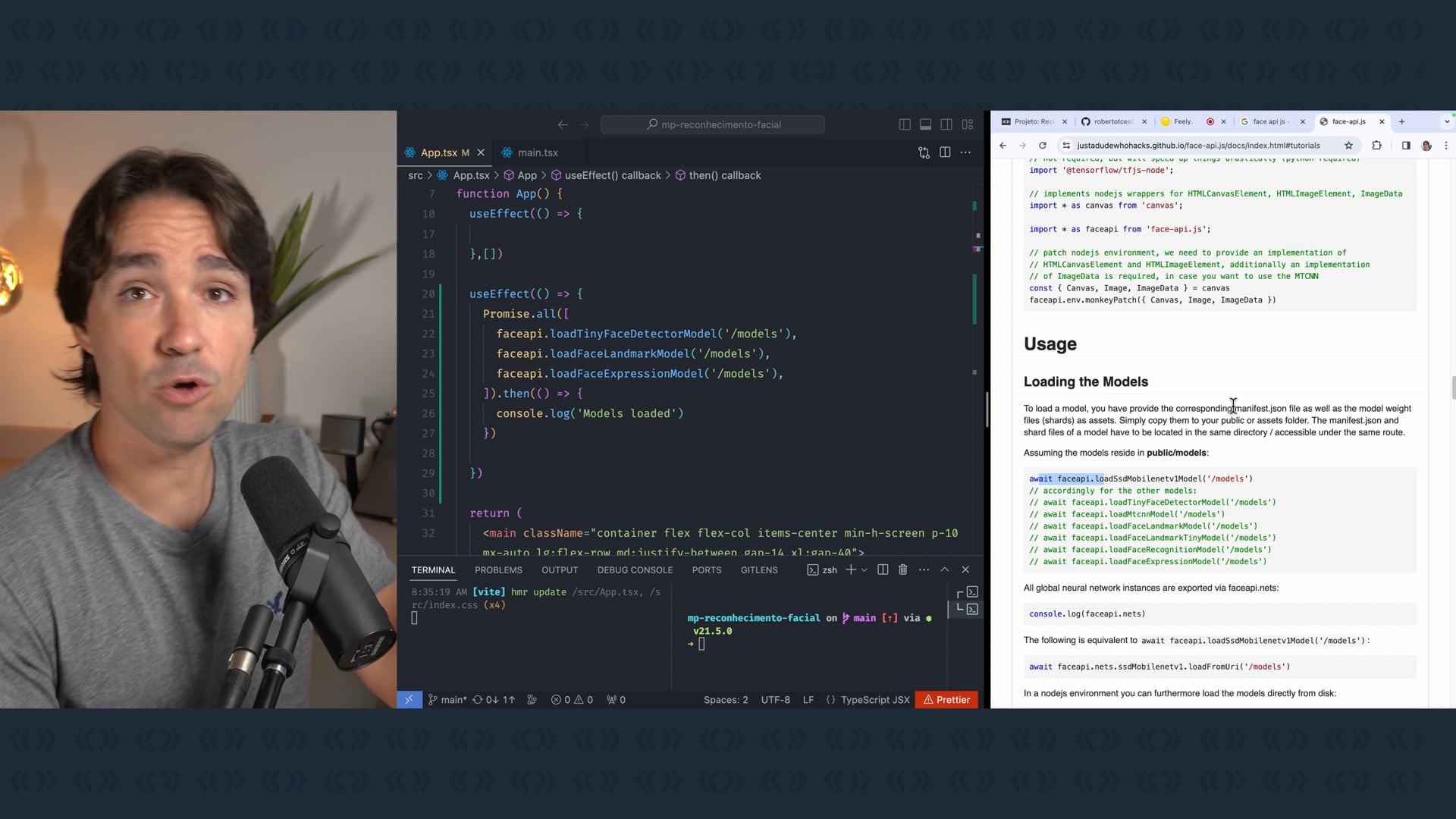 Vamos começar com o FaceAPI detectando uma face no vídeo.