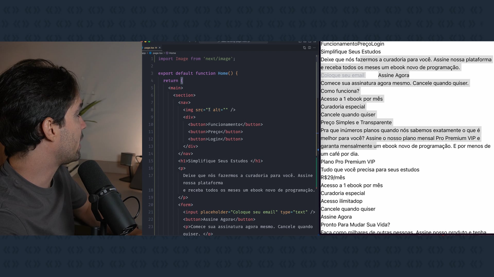 Substituímos os placeholders por imagens do nosso projeto Figma, exportando o logo e uma imagem de uma mulher como SVG. Usamos o Next Image para integrar as imagens à nossa aplicação, prontos para estilização.