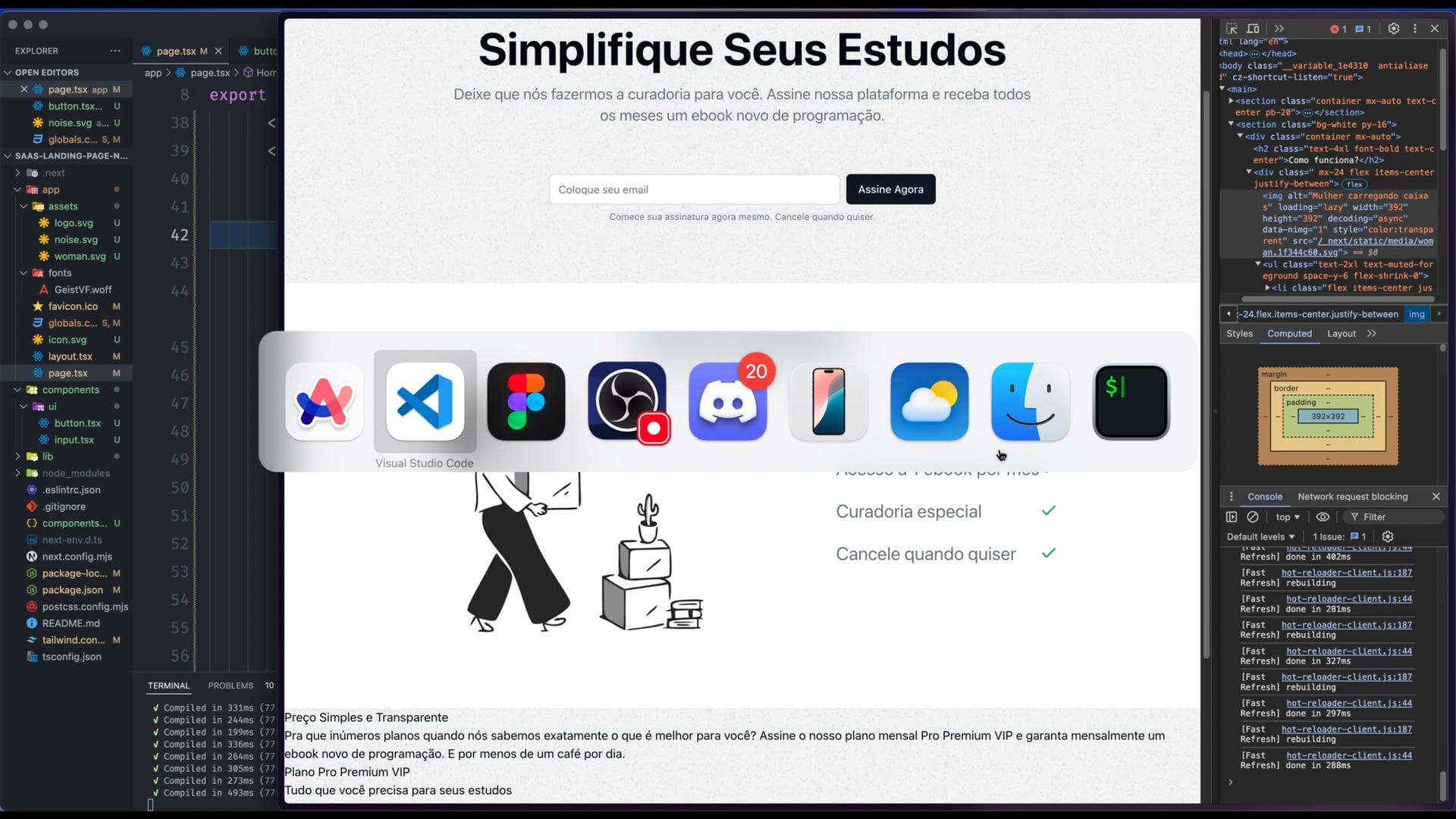 Na seção 2, ajustamos o layout para a funcionalidade `Como Funciona` usando Tailwind CSS. Implementamos imagem e itens em Flexbox, aplicando espaçamentos, alinhamentos responsivos e estilo de checkmarks com referências ao design no Figma.