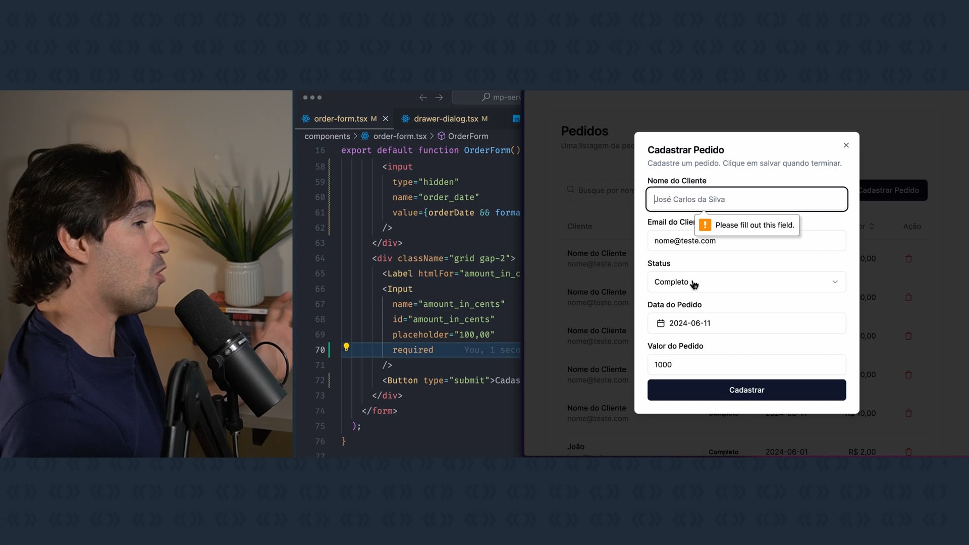 Neste vídeo, abordamos como desabilitar o botão de Cadastrar durante o envio do formulário usando o hook `useFormStatus` no Next.js. Criamos um componente `SubmitButton` para gerenciar o estado pendente, melhorando a experiência do usuário.