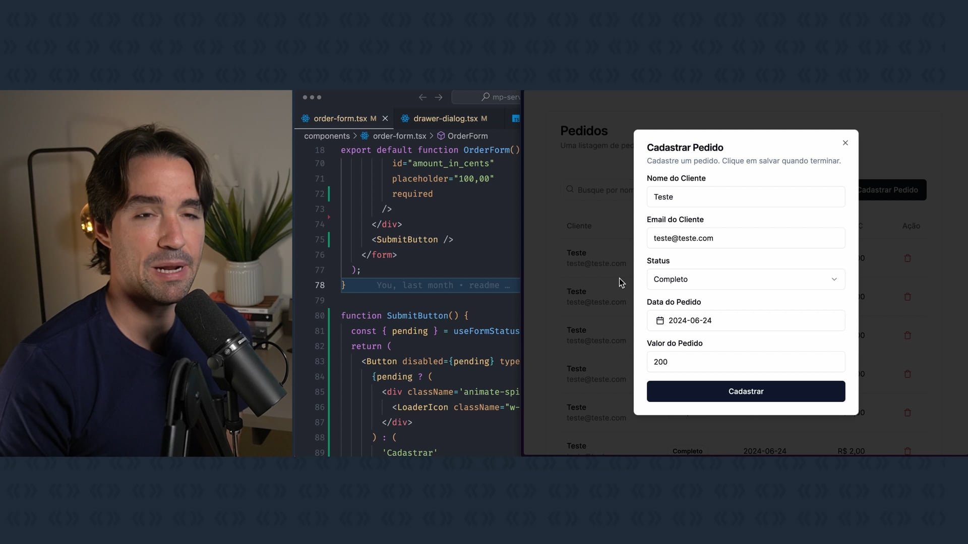 Vamos adicionar um toast para indicar sucesso ou erro na submissão de pedidos usando a biblioteca React Hot Toast. Após instalá-la, incluiremos o componente Toaster no layout da aplicação e configuraremos os toasts de sucesso e erro nos componentes apropriados. Para isso, utilizaremos o hook `useFormState` (ou `useActionState` em versões mais novas), permitindo comunicação entre a server action e o client component.