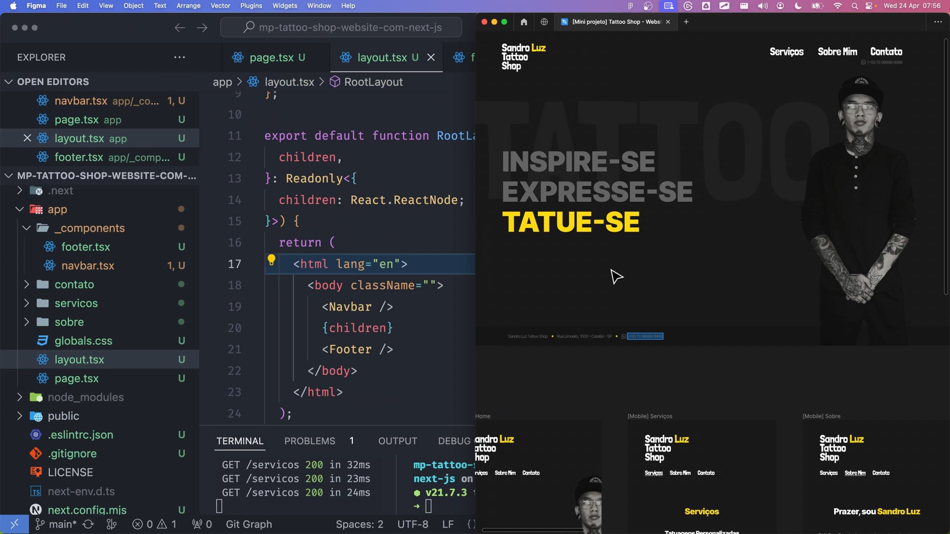 Aprimoramos o layout da nossa página de tatuagem em Next.js, definimos o fundo na cor Zinc 900 e o texto padrão em branco, ambos com o auxílio do Tailwind. Além disso, estruturamos melhor os elementos de navbar, corpo da página e footer usando conceitos de flexbox. Prestamos atenção especial ao uso eficaz de altura mínima e à ocupação de espaço para uma experiência de usuário agradável. Continuaremos com a estilização no próximo vídeo.