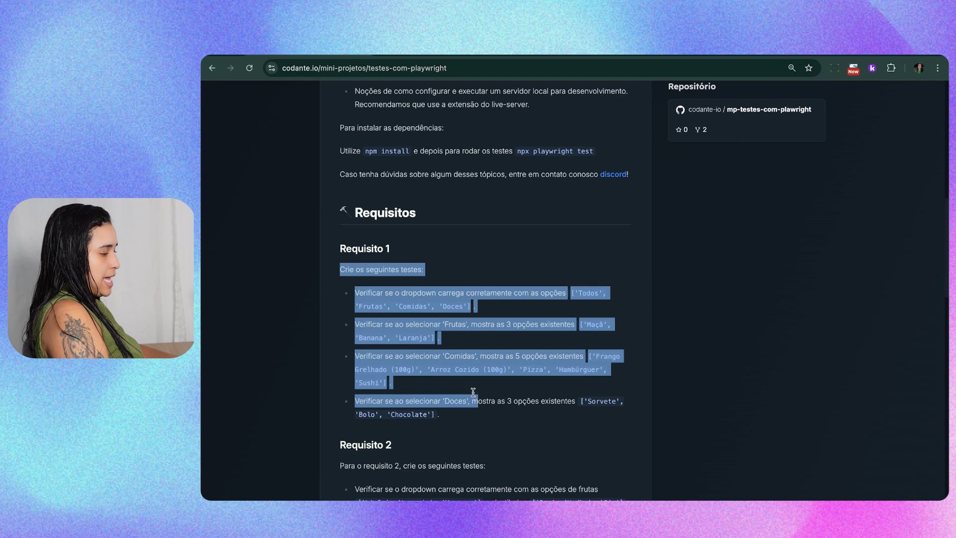 Criamos um teste end-to-end com Playwright para verificar se um dropdown carrega as opções corretas. Utilizamos JavaScript para simular interações e validar que os textos das opções estão corretos usando comparações adequadas.