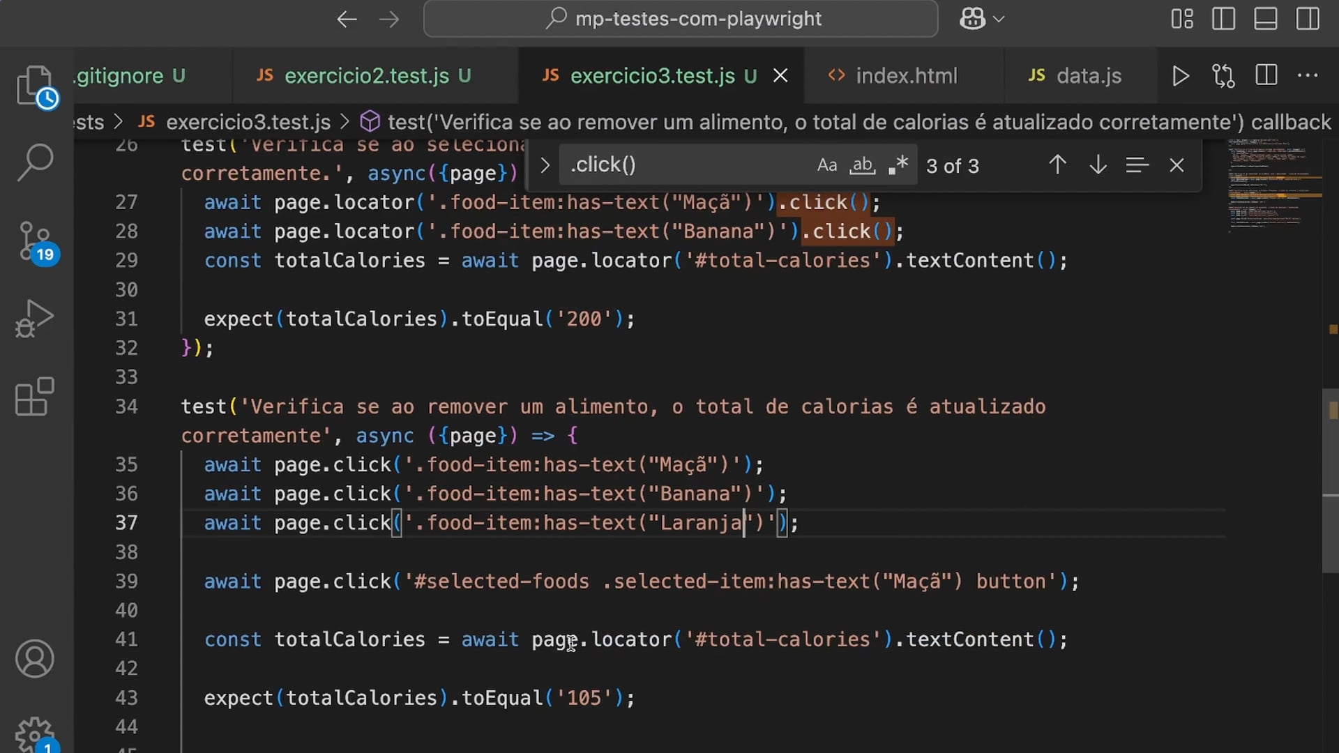 Testes de Calorias Atualizados