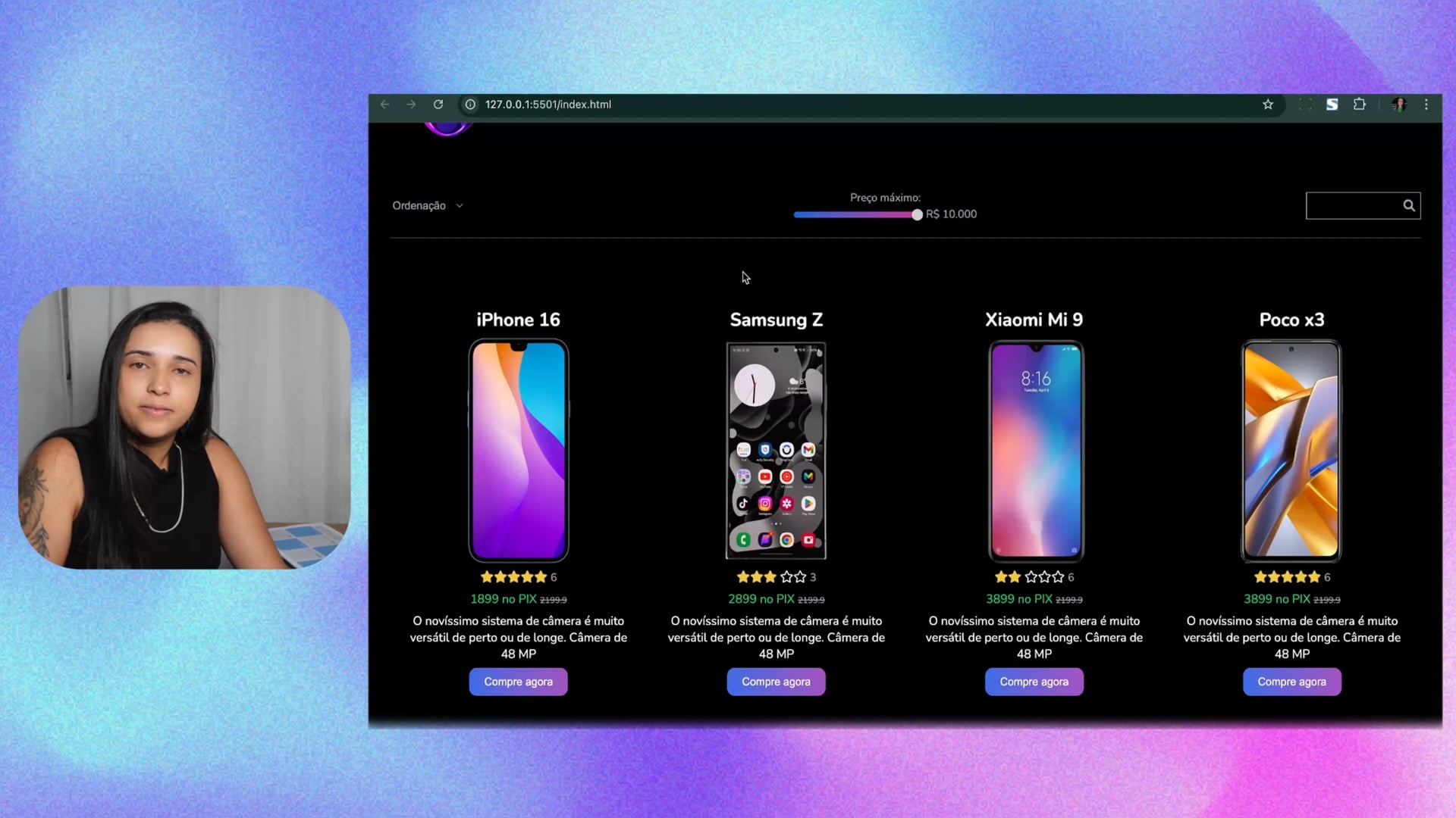 Finalizamos o mini projeto e convidamos vocês a conferir o código no repositório, onde incluímos uma função para trocar imagens. Comentários e dúvidas são bem-vindos, e estamos disponíveis no Discord também.