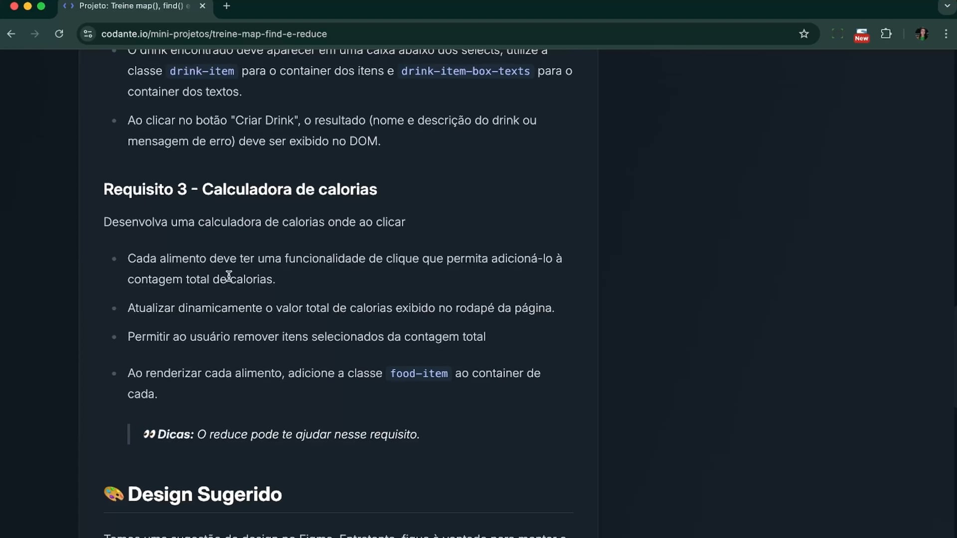 Estamos desenvolvendo uma calculadora de calorias em um projeto. Implementamos a funcionalidade de clicar em um card de alimento para adicionar seu valor calórico ao total e listar o item. Adicionamos eventos de clique nos cards para exibir o teste no console.