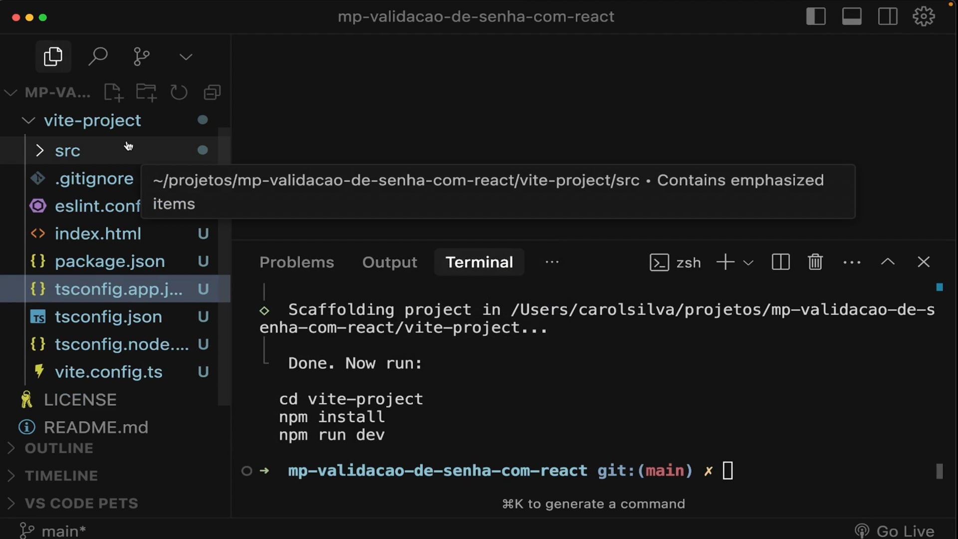 Criamos um projeto React usando Vite com TypeScript e SWC. Instalamos dependências, configuramos Tailwind CSS conforme a documentação e limpamos arquivos padrão. Finalmente, rodamos o ambiente de desenvolvimento.