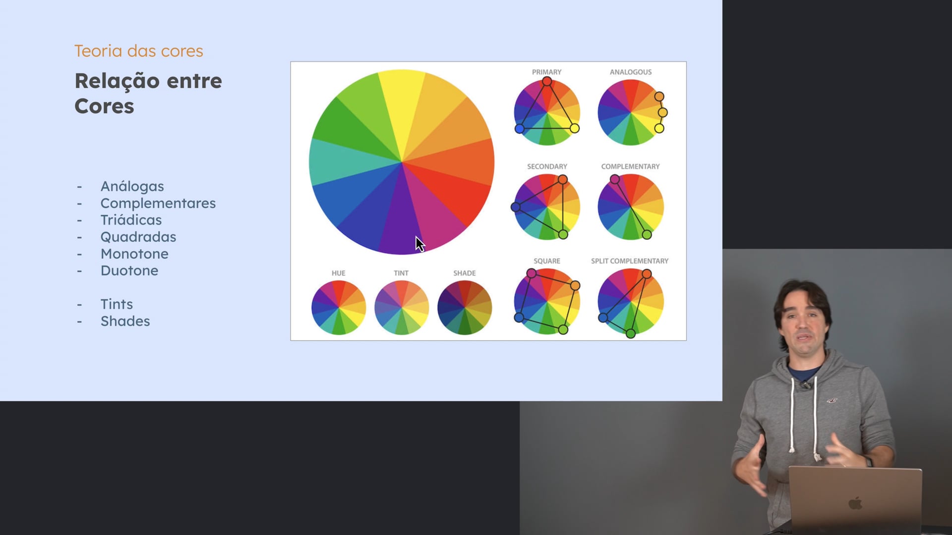 Cores análogas, complementares, tríades e quadradas são o tema dessa aula.