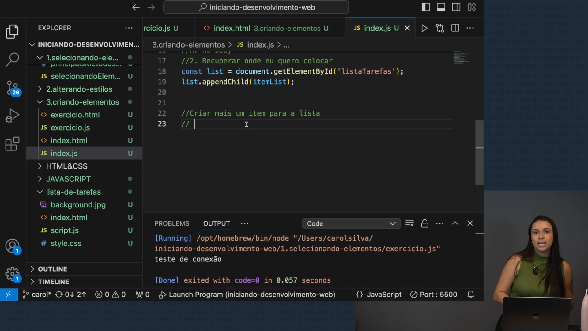 Discutimos como aplicar o exercício de criar um item de lista no DOM. Analisamos os passos de criação com `createElement`, escolha do elemento, definição do local de inserção e adição de texto. Avaliamos abordagens diferentes para desenvolver a lógica pessoal.