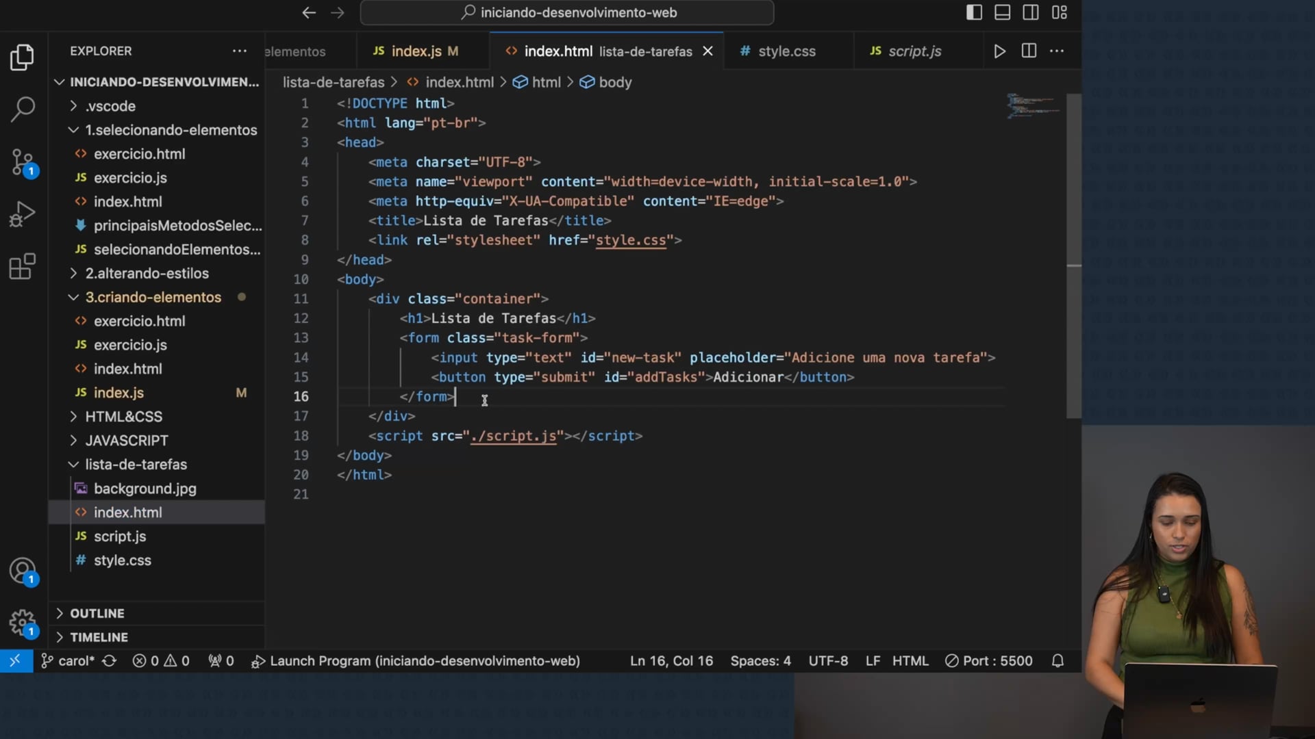 Estamos planejando um sistema dinâmico para adicionar tarefas a uma lista em HTML usando JavaScript. Discutimos a recuperação de valores do input, configuração do evento de clique no botão e ajustes no comportamento padrão do formulário para atualizações dinâmicas.