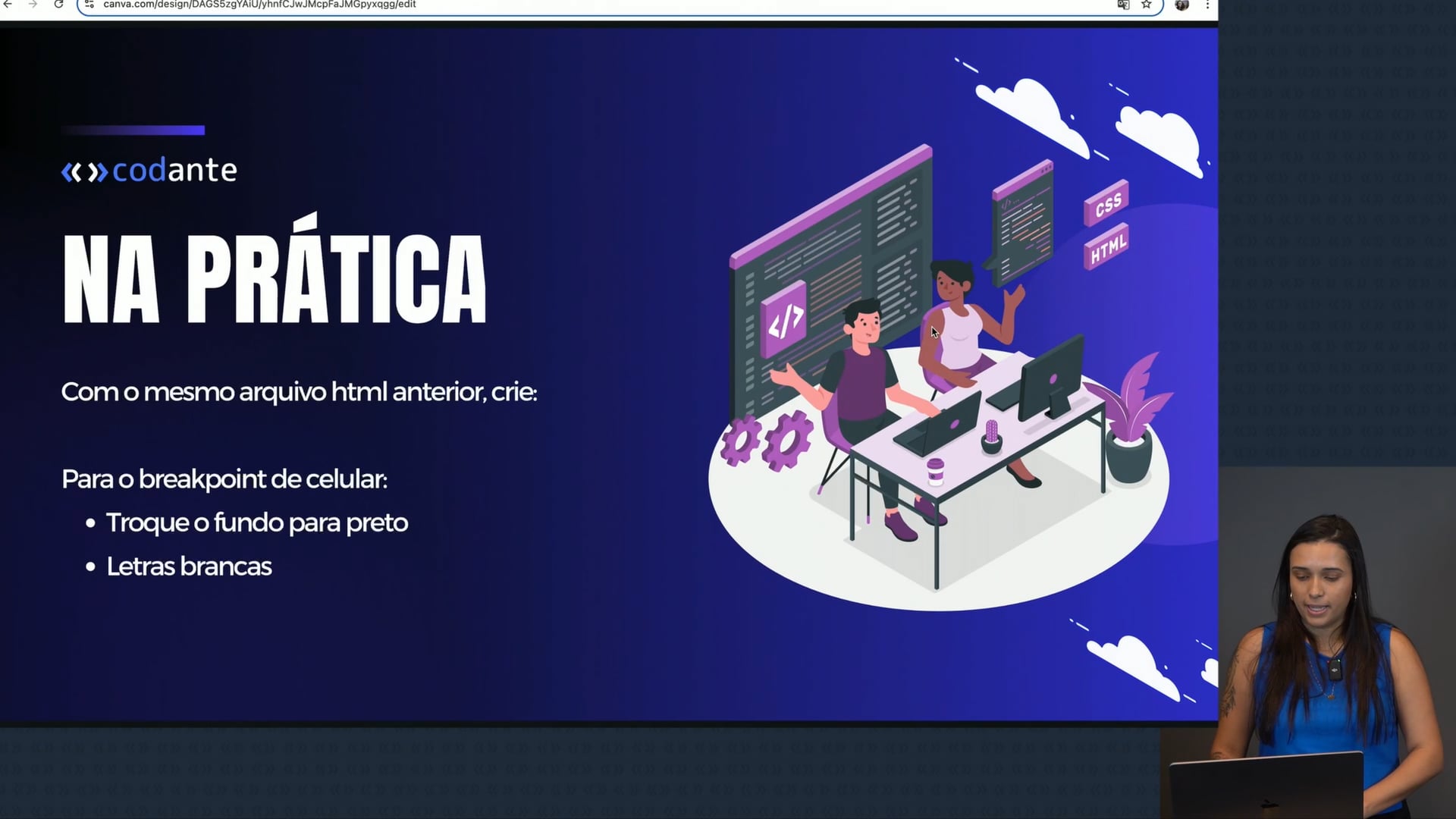 Criamos um breakpoint para dispositivos móveis, alterando o fundo para preto e as letras para branco em um exercício de HTML e CSS. Incentivamos a participação na comunidade para apoio e dúvidas.