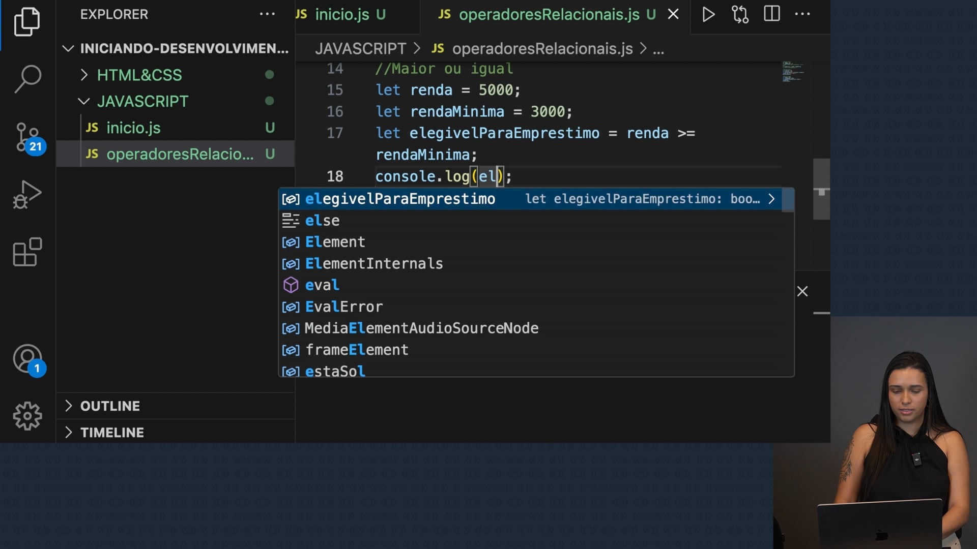 Discutimos o operador `maior ou igual a` em JavaScript, aplicado para determinar elegibilidade de empréstimo com base em renda. Destacamos a transição para TypeScript, uma versão tipada do JavaScript, e mencionamos métodos de aprendizagem.
