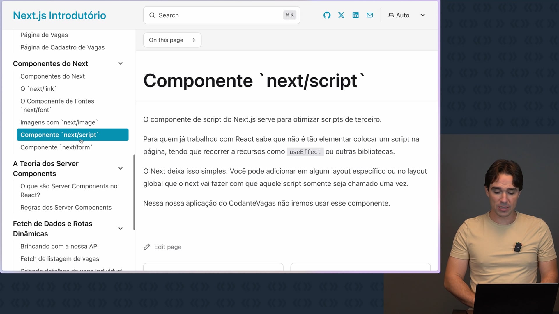 Apresentaremos o componente `next/script`, que serve para carregar scripts de terceiros de forma otimizada. Explicaremos como o `next/script` evita o problema de carregar scripts de terceiros em cada renderização de um componente React, facilitando a integração de serviços como Google Analytics, Google Tag Manager e Stripe.