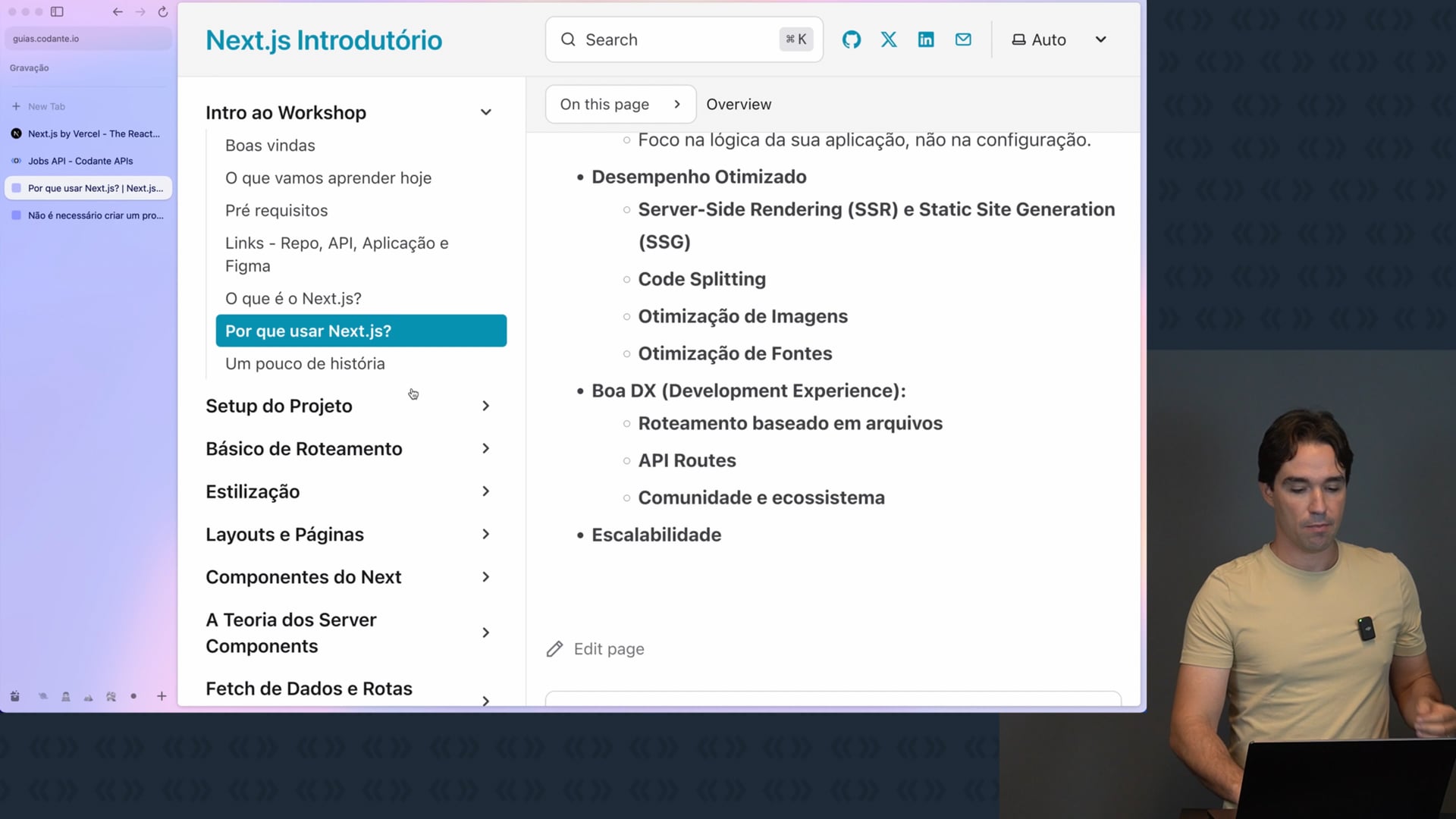 Exploraremos a evolução da internet desde as páginas estáticas até a interatividade com PHP e AJAX. Abordaremos a era do JavaScript e o surgimento de frameworks como React, Angular e Vue.js, que simplificaram a renderização. Falaremos sobre o Jamstack e a volta do servidor com o Next.js, mostrando como ele se posiciona como uma espiral positiva na evolução da web.